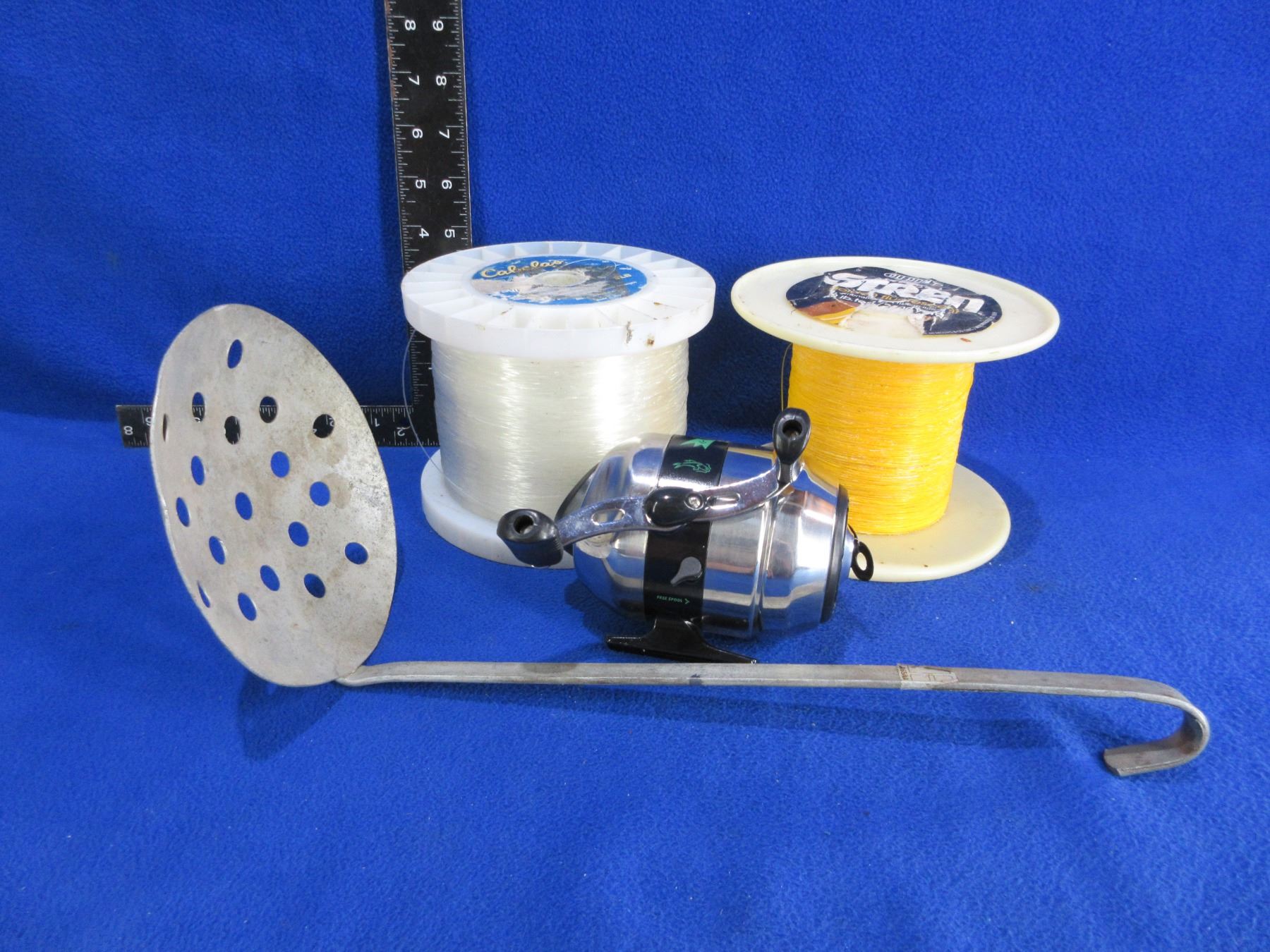 Dupont 40 lb & Cabela's 2 lb Test Bulk Line, Mudville Catmaster Reel & Ice Scoop
