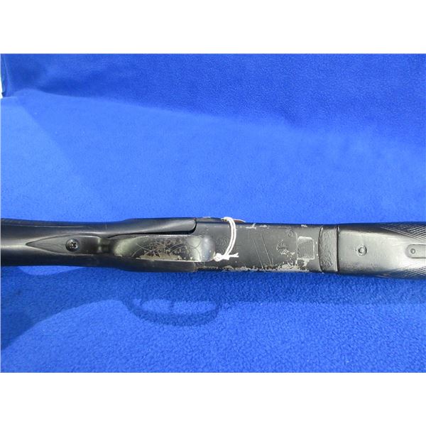 Non-Restricted - Baikal Model IJ-12 in 12 Ga. 3" - Made in USSR, this is an over/under shotgun, action is tight and appears to be in good working order. Solid rib barrels are 28 3/4", bores are good, bluing is painted black and has scratches, has bead front sight, stock is good (no cracks) but has been poorly painted black and is peeling in spots, length of pull is 14", forearm is good (no cracks) but has been poorly painted black and is peeling in spots, butt plate good, comes with front swivel stud, rear swivel stud missing. All parts of this shotgun have been painted black and paint is wearing off in areas. Ser # BM0722