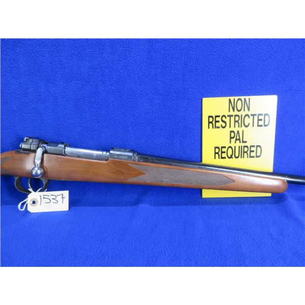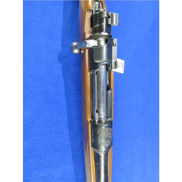 Non-Restricted - Brazilian Mauser Model M95H in 30-06 Sprg - This is a bolt action rifle with floorplate magazine, action appears to be in working order but should not be fired as barrel is bent. Barrel is 23 1/2", rifling is good to very good but barrel is bent, bluing is good, has no sights, holes for sights are on the bottom as the barrel has been attached incorrectly, stock is good with usage marks, length of pull is 14", butt plate good, swivel studs are missing. Ser #54477