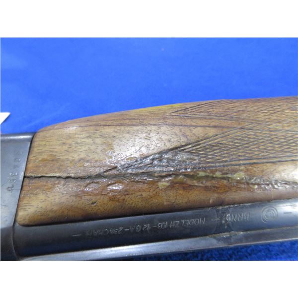 Barrel & Forearm Only - BRNO Model ZH 103 in 12 Ga. 2 3/4" - Barrels are 30", bores are good, bluing is fair to good with light scratches and pitting, has front bead sight, forearm has a major crack repair on both sides at the back. Ser. # 304358 - PAL Required