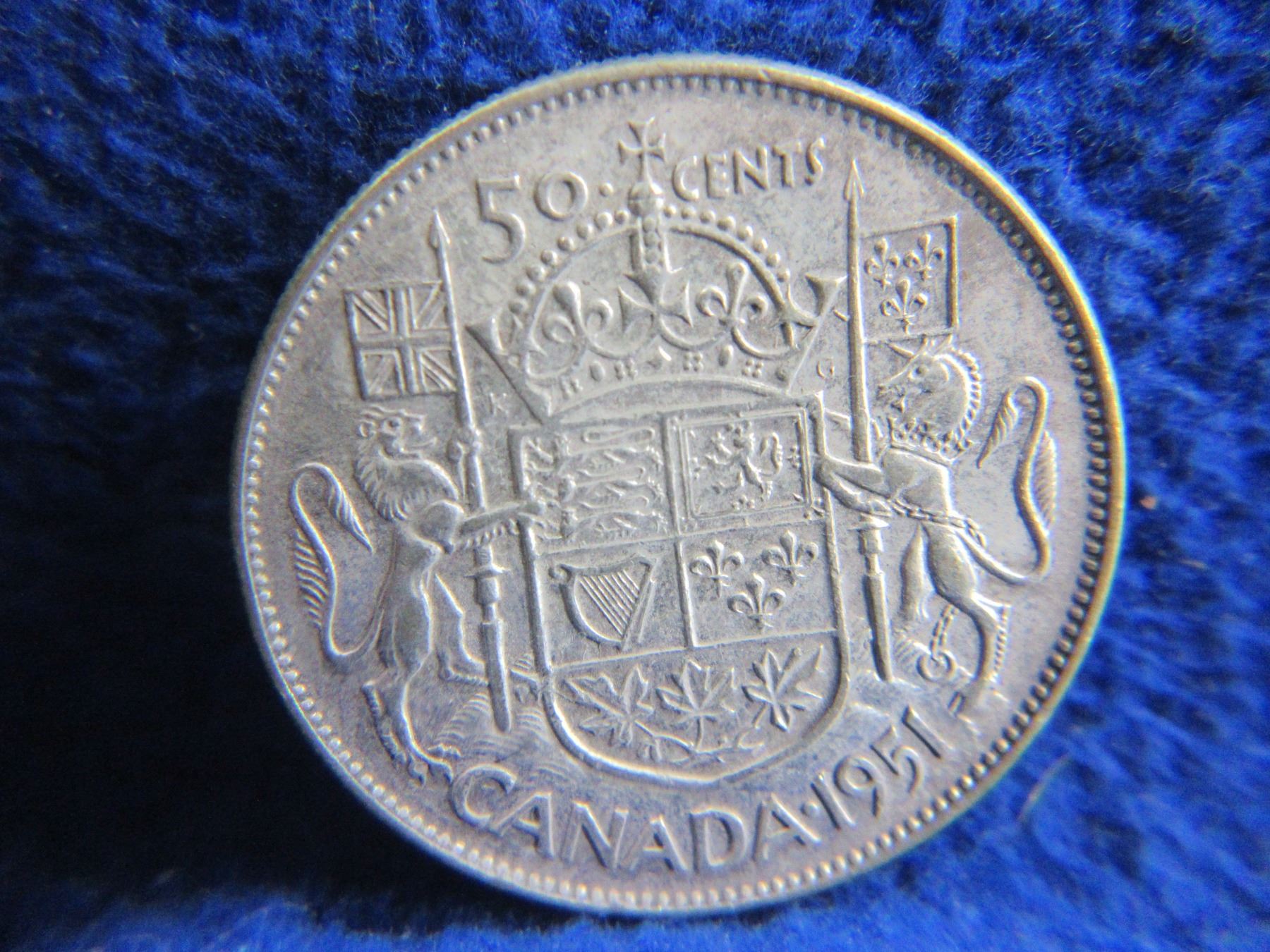 1951 Canadian 50 Cent Coin "George VI" - .800 Silver