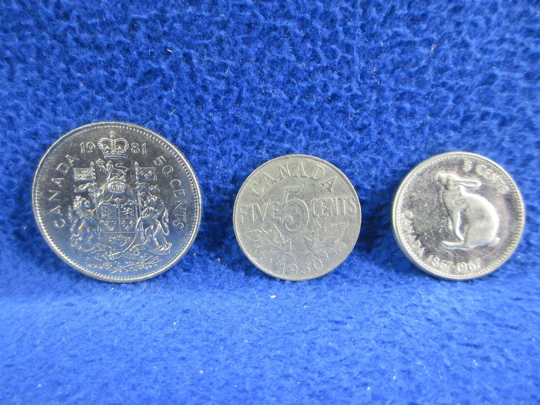 1981 Canadian 50 Cent, 1930 Canadian 5 Cent, 1967 Canadian 5 Cent