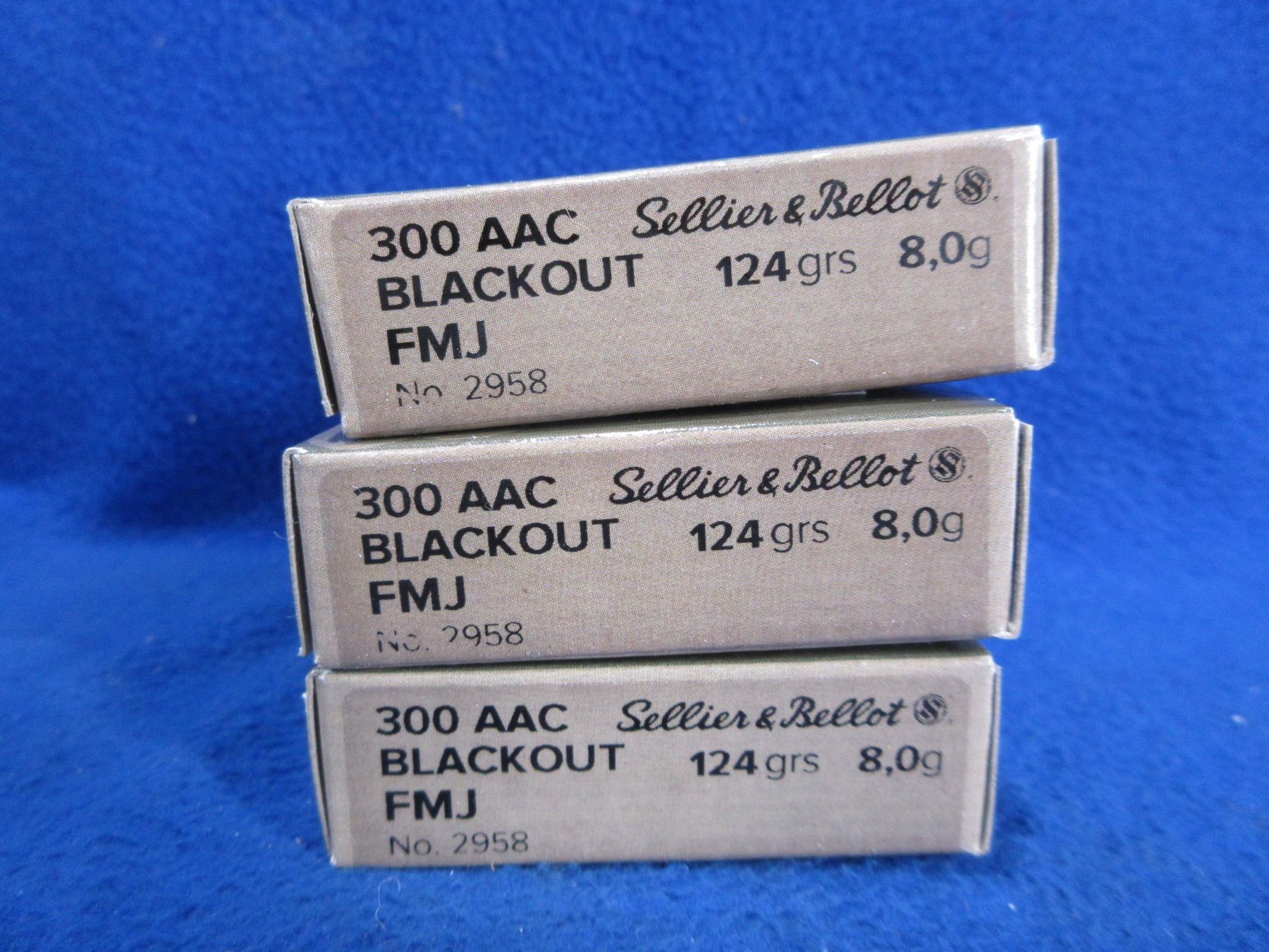 300 AAC Blackout 124gr FMJ (Pick Up or Ship by UPS Only) Sellier & Bellot Cartridges - 3 Boxes of 20