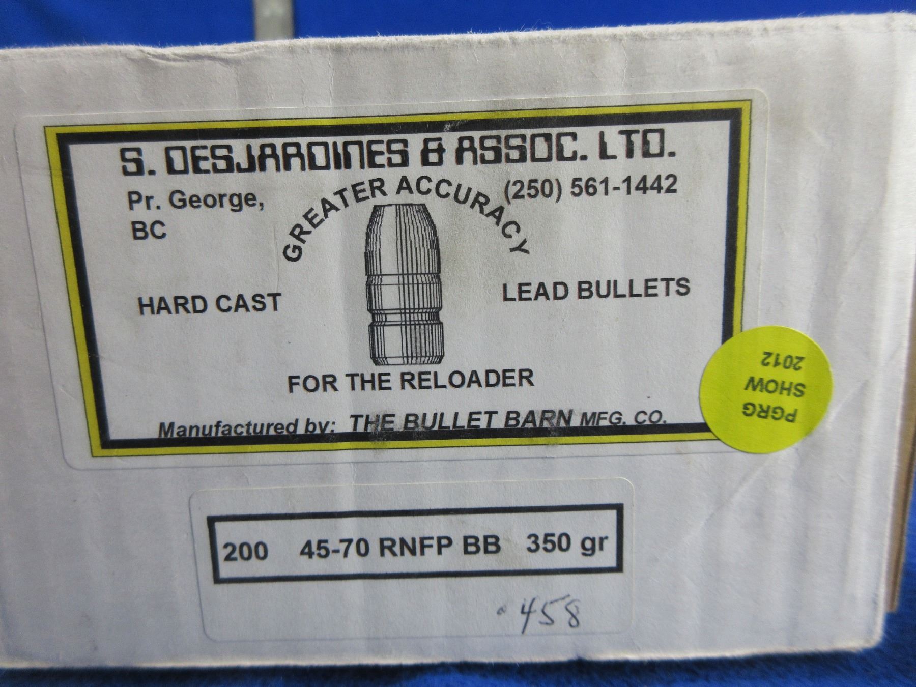 Lot 2036 45-70 .458" 350gr RNFP BB Bullet Barn Bullets - Box of 200