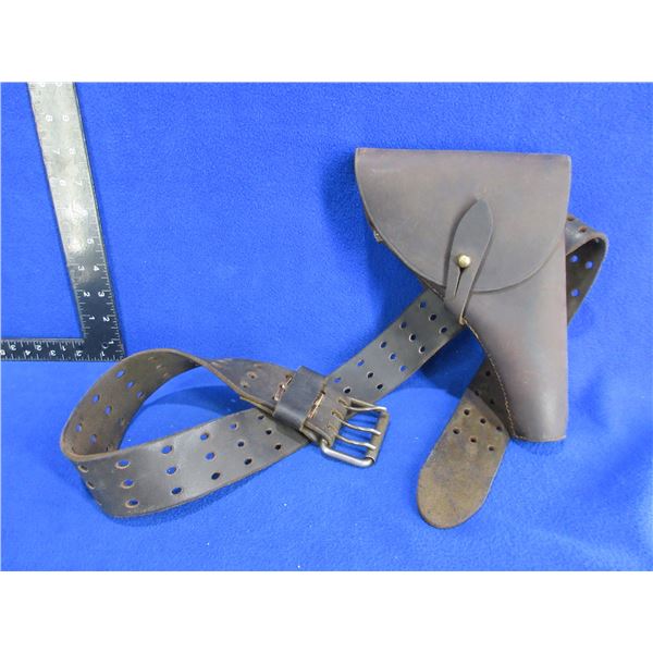 Vintage Leather Belt w/ Holster - Belt is 46" Total Length