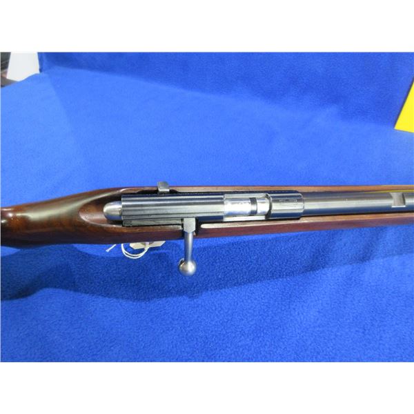 Non-Restricted - Anschutz Model 1400 in 22 LR - This is a bolt action rifle with removable magazine, action appears to be in good to very good working order. Barrel is 21 3/4", rifling is good to very good, bluing is good, has no sights but has integral base, stock is good with usage marks, length of pull is 13 1/2", butt plate good. Ser #720587