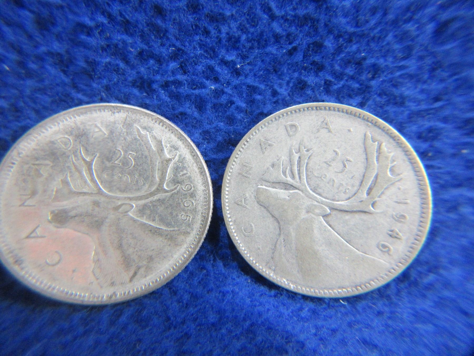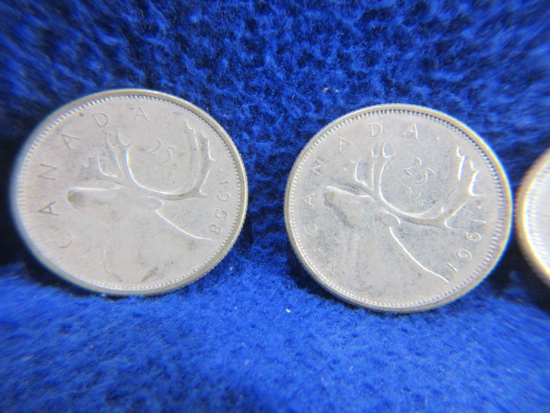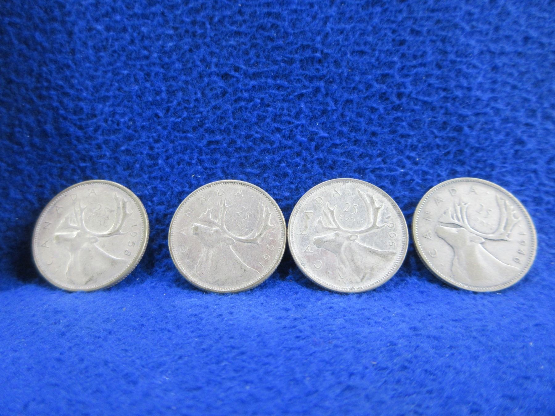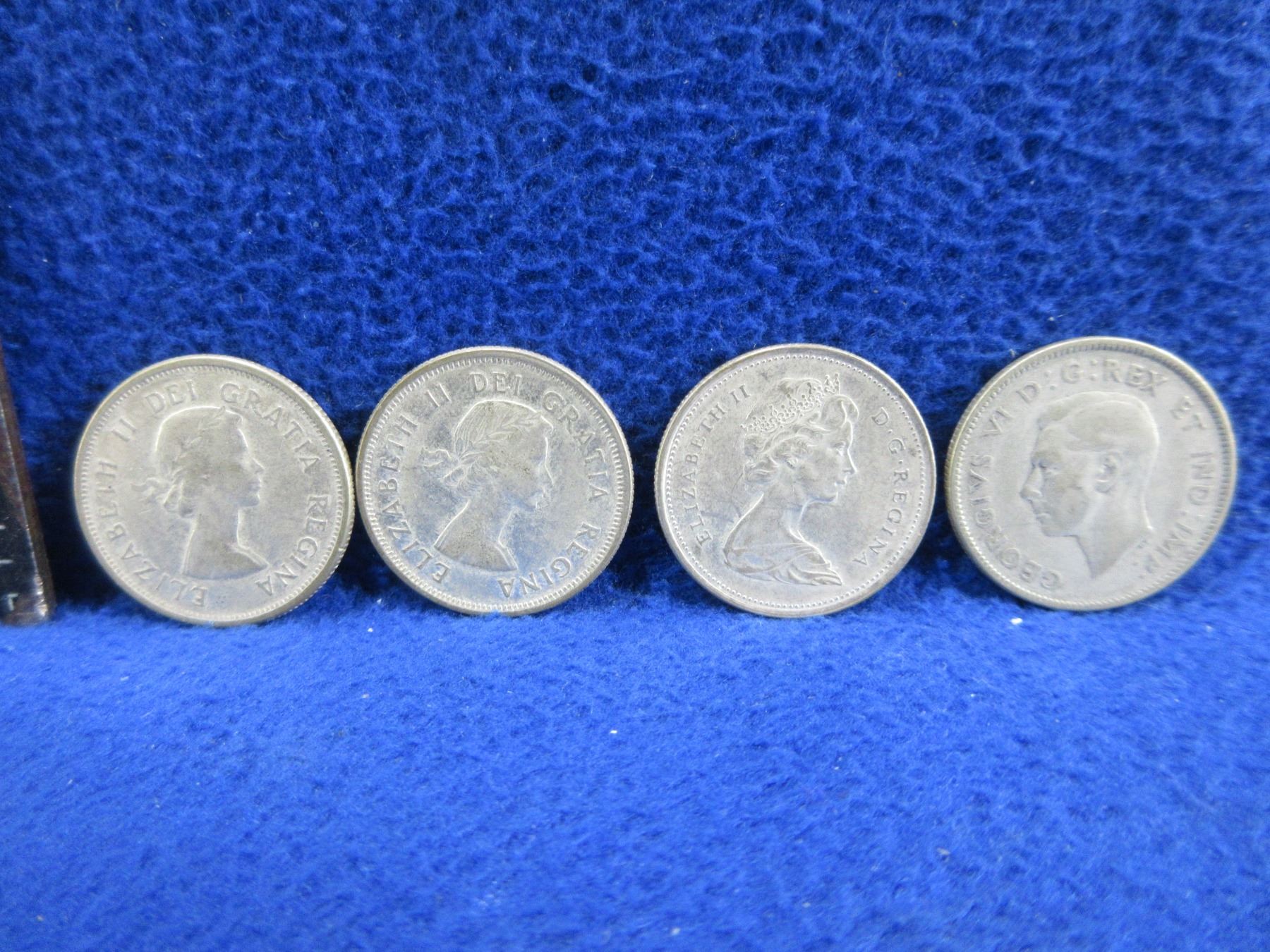 Lot 2076 4 Canadian 25 Cent Coins - .800 Silver - 1946, 1958, 1961, 1965
