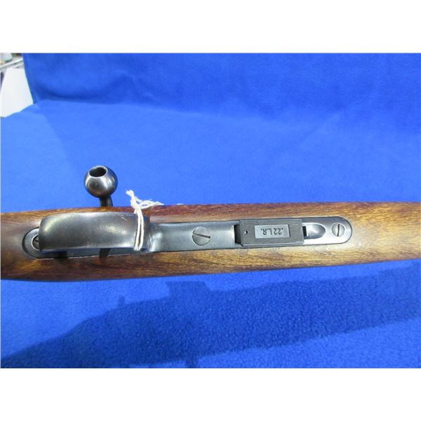 Non-Restricted - BRNO Model 2-E-H in 22 LR - This is a bolt action rifle with removable magazine, action appears to be in good to very good working order. Barrel is 24 3/4", rifling is good to very good, bluing is good with some light scratches and wear spots, sights are missing but has integral rail, stock is good with usage marks, length of pull is 14", butt plate good, comes with swivel studs. Ser #458528