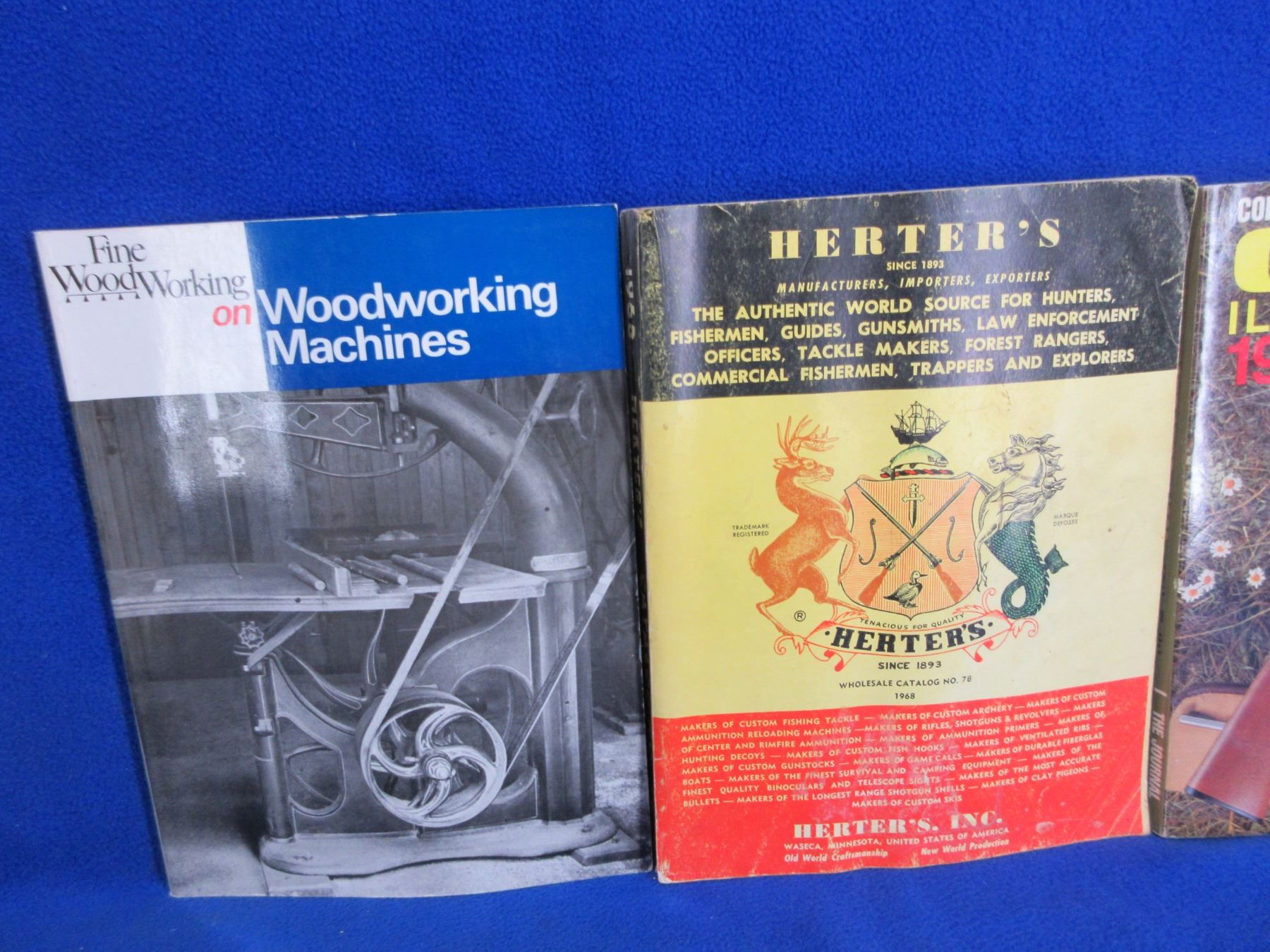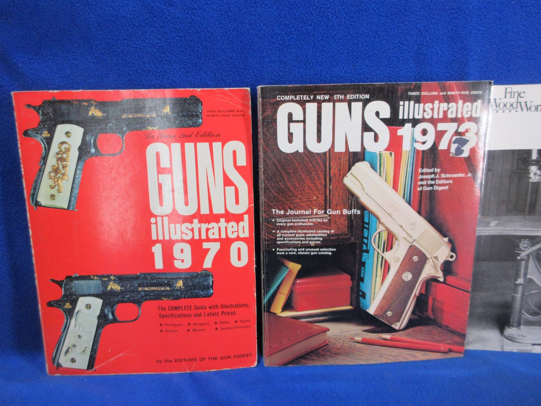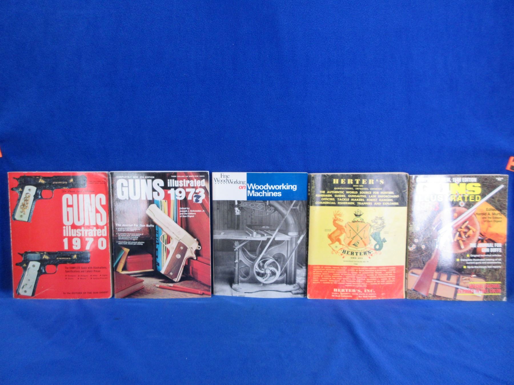 5 Gun Books/Catalogs - Guns Illustrated 1970, 73, 83, Herter's Catalog No. 78, Fine Woodworking on Woodworking Machines