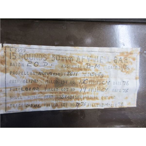 Metal Ammo Can - 12" x 5 1/2" x 13 1/2" High - 15 RDS 30MM AFV - Same width and length as the 50 caliber cans and will stack nicely with the 50 caliber cans.