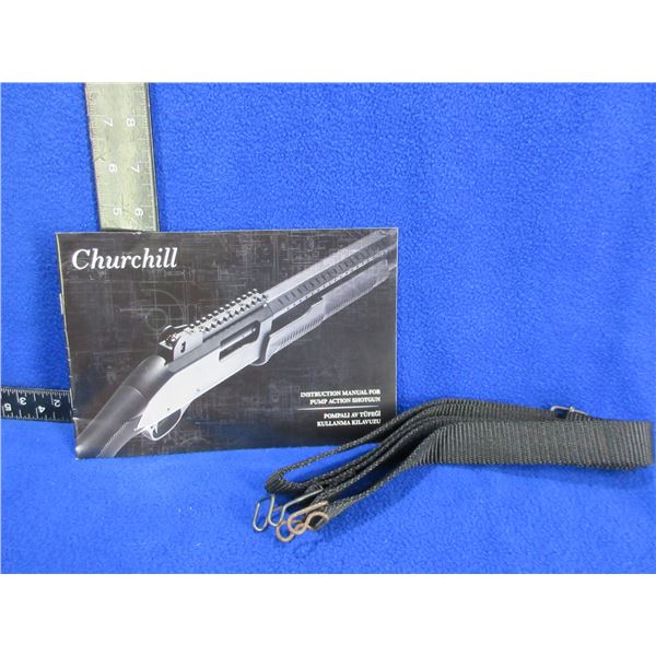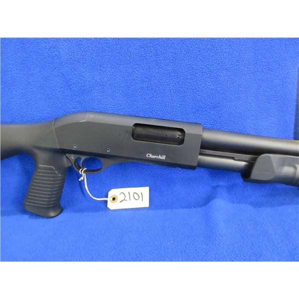 NEW - Never Fired, Never Used - Non-Restricted - Akkar Churchill Model 612 in 12 Ga. 3" - This is a pump action shotgun with tube magazine. Barrel is 12", black finish, has blade front sight, synthetic pistol grip stock, length of pull is 14", synthetic forearm, rubber recoil pad. Comes with swivels, manual and sling. Ser # 18252720