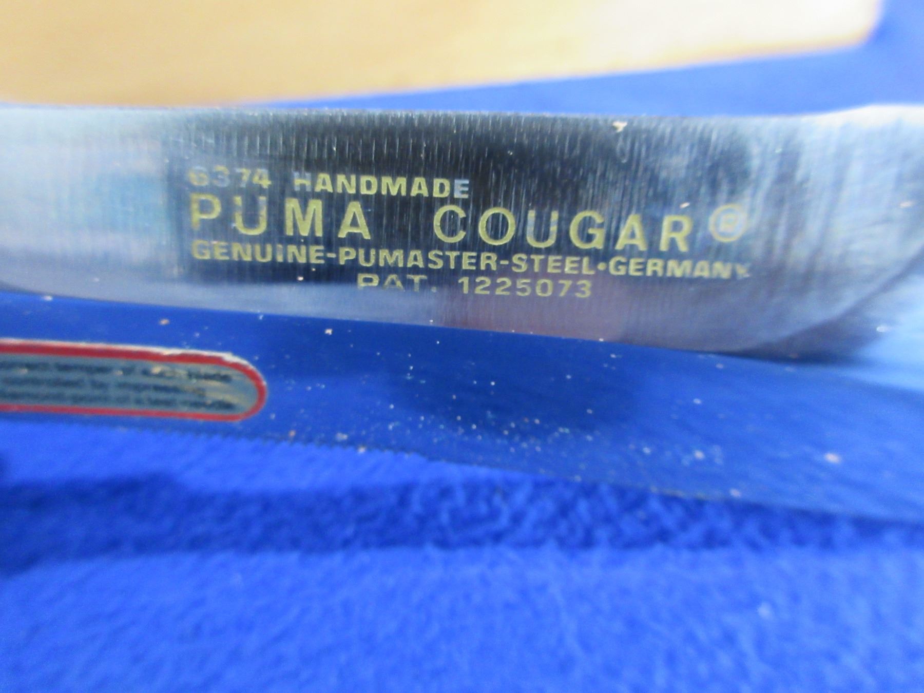 Puma Cougar 6374 with Leather Sheath and Stag Handle - # 73373 on Guard - Appears Unused - Comes with Puma wood display case