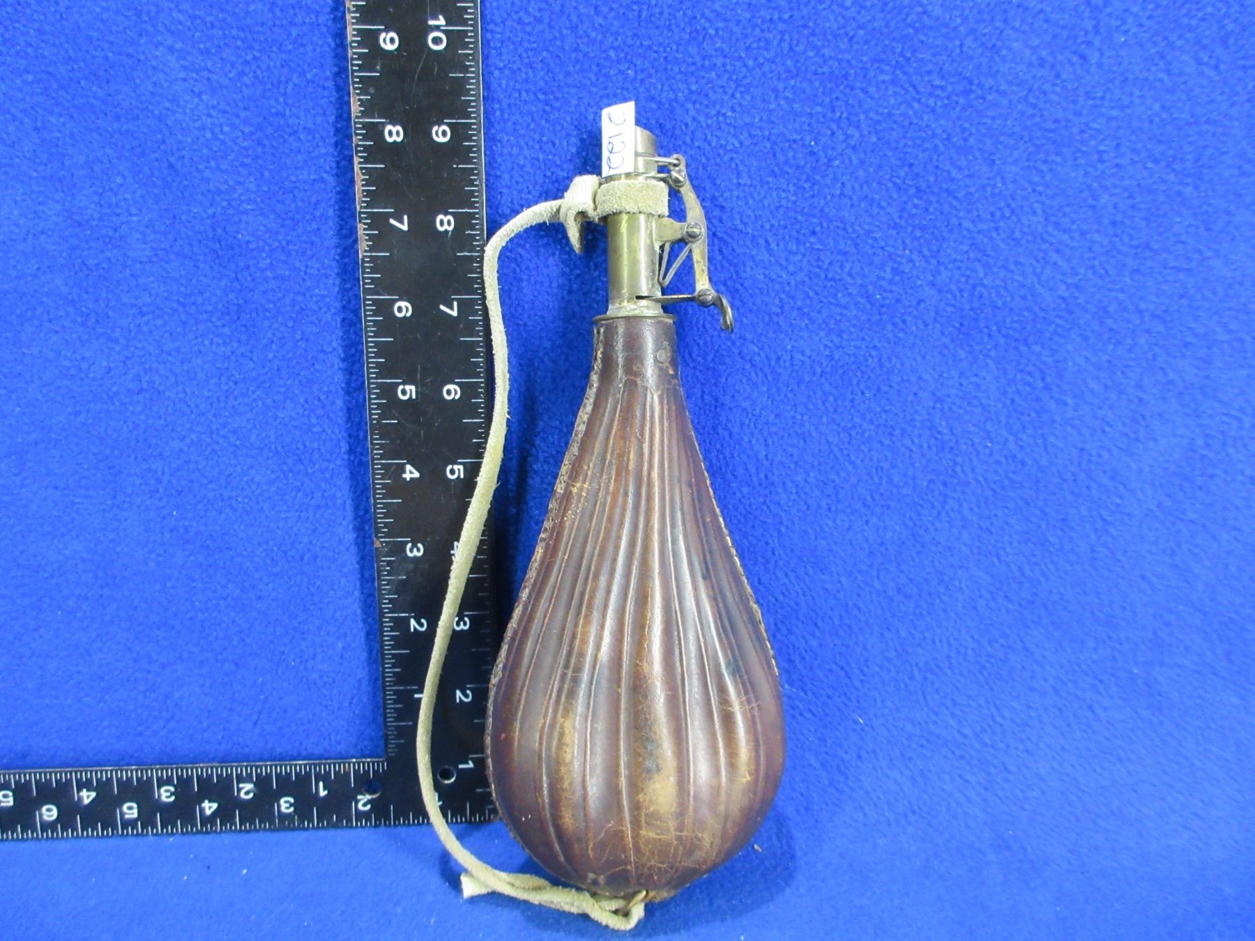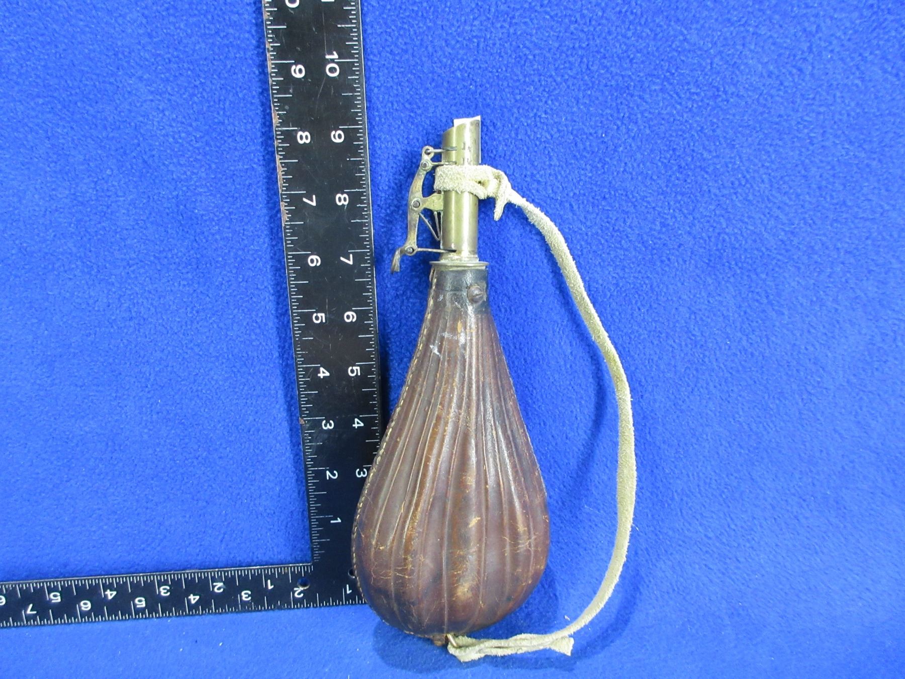 Lot 2122 Vintage Leather and Brass Powder Flask