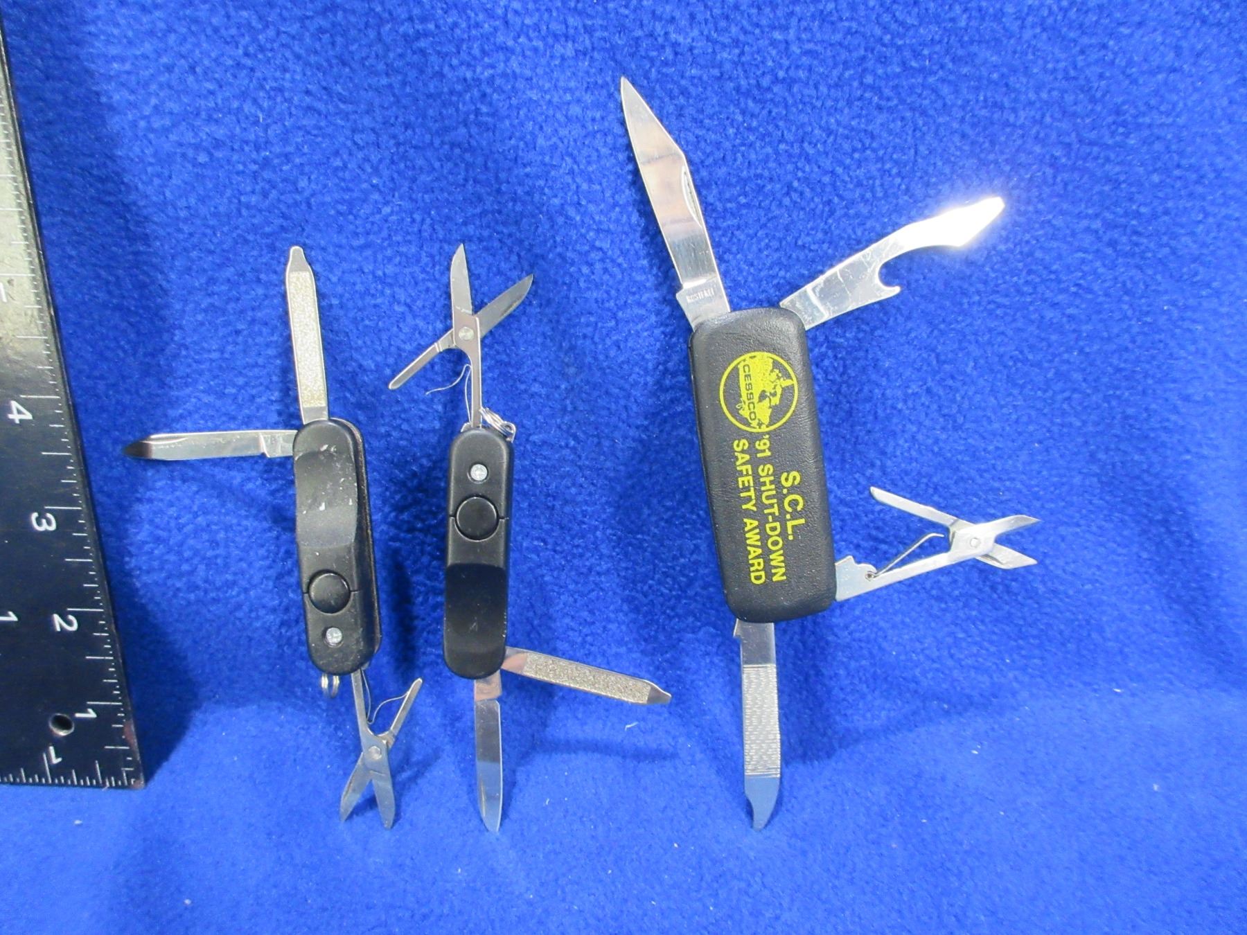 Lot 2131 3 Folding Pocket Knives - 2 are Key Chain Style w/ Flashlights