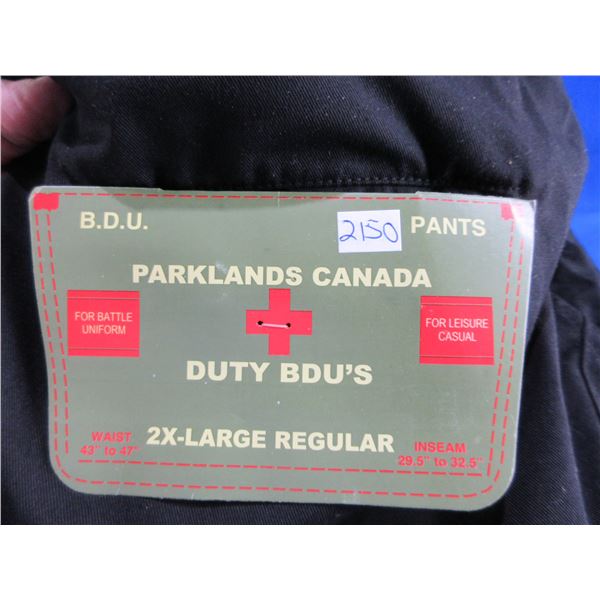 Parklands Canada Duty BDU'S Black Pants - Size 2X-Large Regular, Waist 43" to 47", Inseam is 29 1/2" to 32 1/2" - New Old Stock
