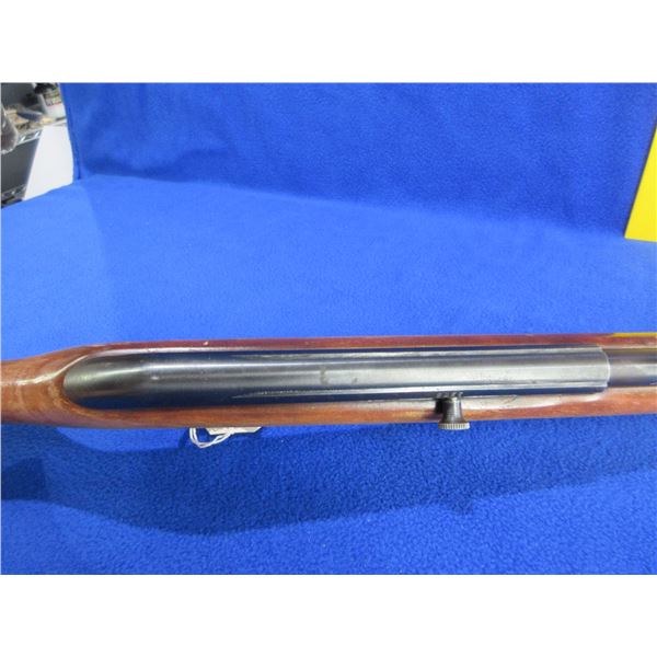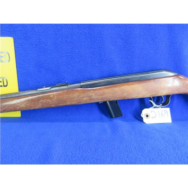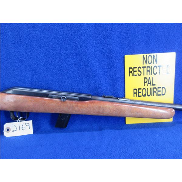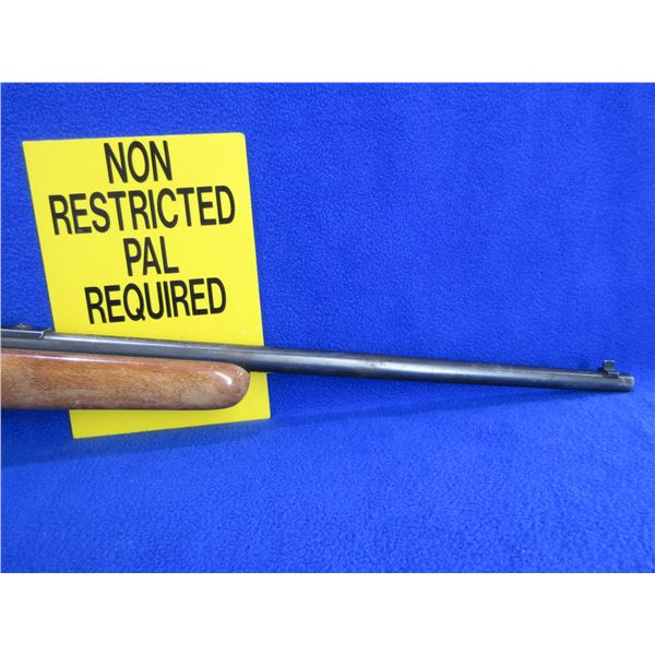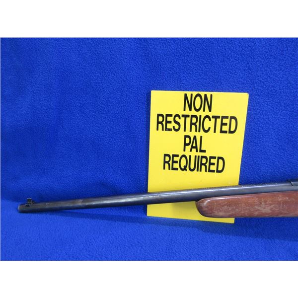 Non-Restricted - Cooey by Winchester Model 64A in 22 LR - This is a semi-auto rifle with removable magazine, action appears to be in good to very good working order. Barrel is 20", rifling is good, bluing is good with wear patches and light pitting, has both sights and integral rail, stock is good with usage marks and finish flaking, length of pull is 13", butt plate good. Ser # None