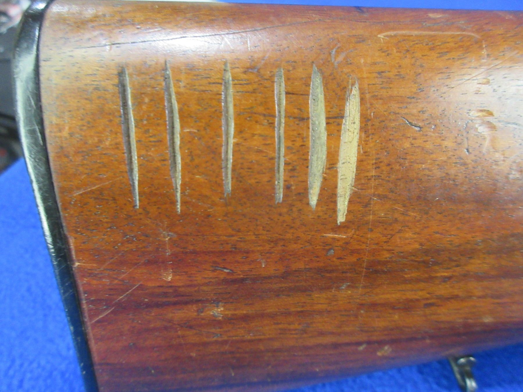 Non-Restricted - Geco Model 98 Mauser Sporter in 9.3x57 - This is a bolt action rifle with floorplate magazine, action appears to be in good to very good working order. Barrel is 23 3/4", rifling is good, bluing is good with some wear spots and light pitting, has both sights and Weaver style bases, stock is good with usage marks has notches etched on both sides at butt, length of pull is 14 1/2", butt plate good, comes with swivels. Ser #4477