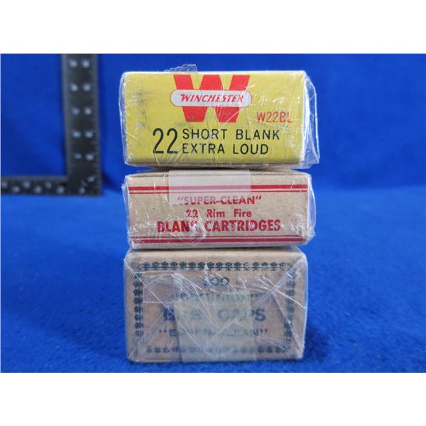 Collector Ammo - CIL BB Caps (Box of 100) & 22 RF Blanks (Box of 50), Winchester 22 Short Blanks (Box of 50)