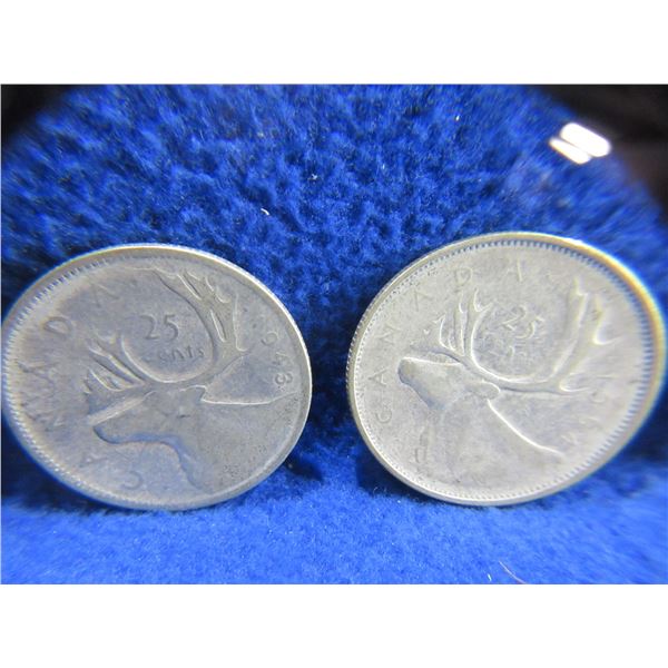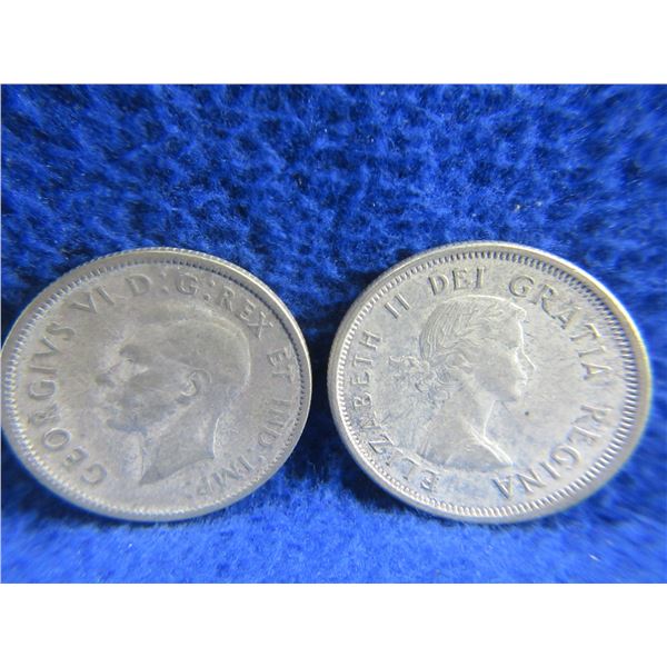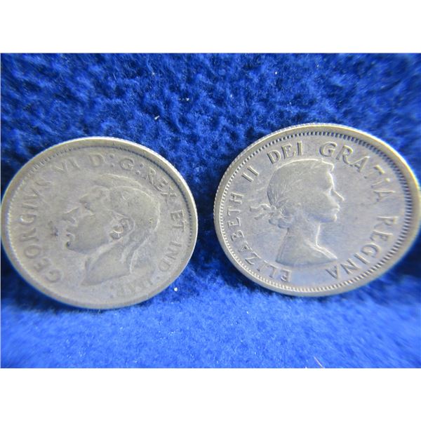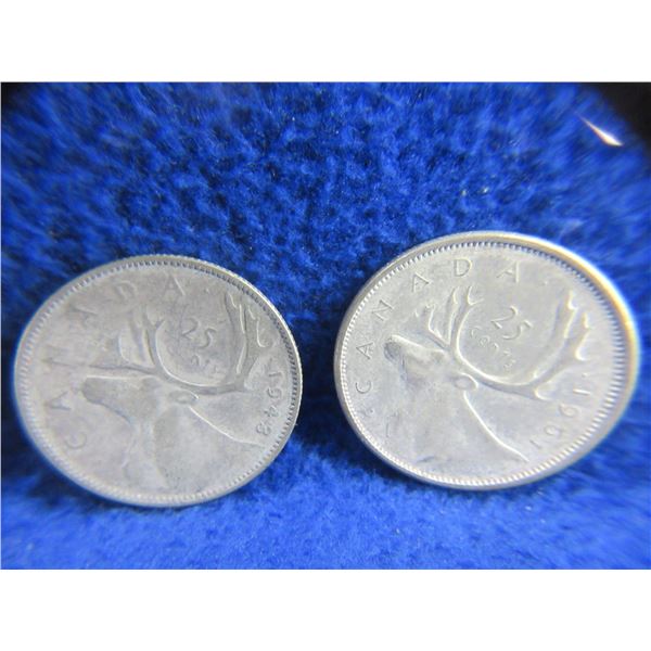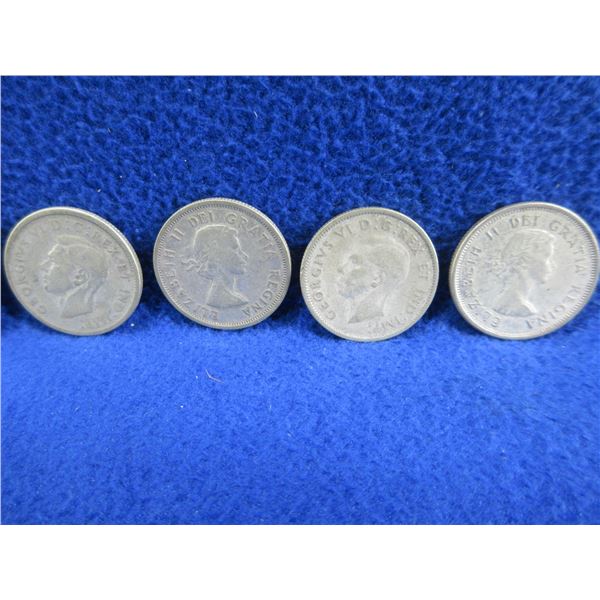 4 Canadian 25 Cent Coins - .800 Silver - 1943 x 2, 1954, 1961
