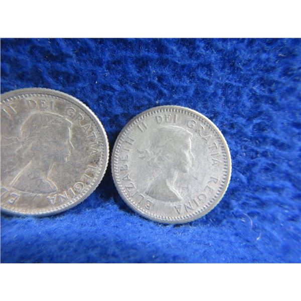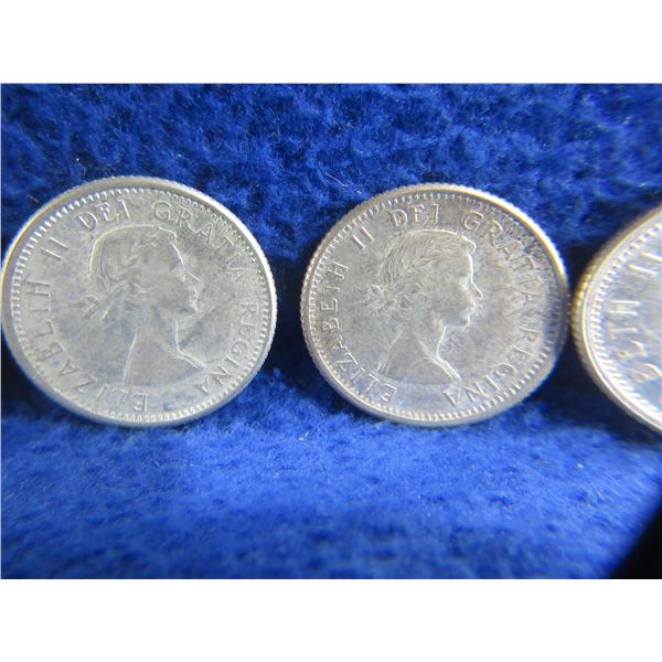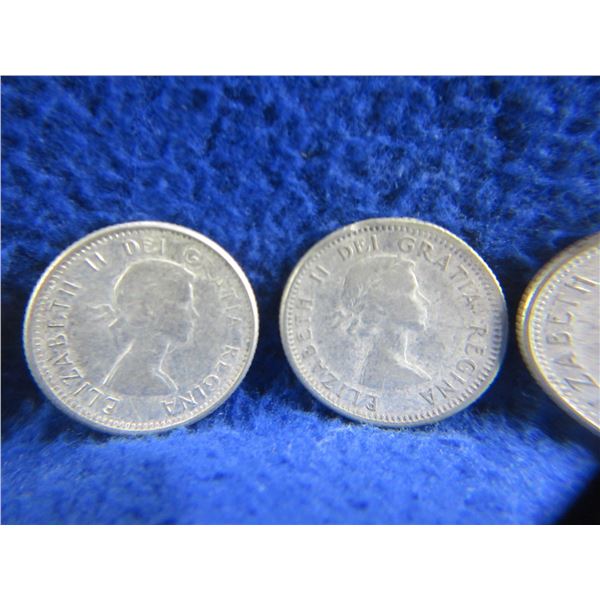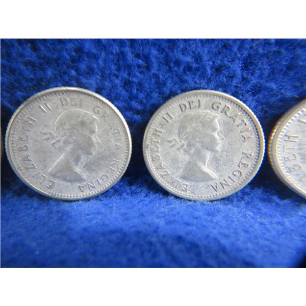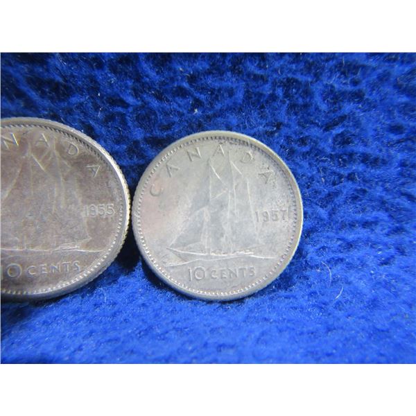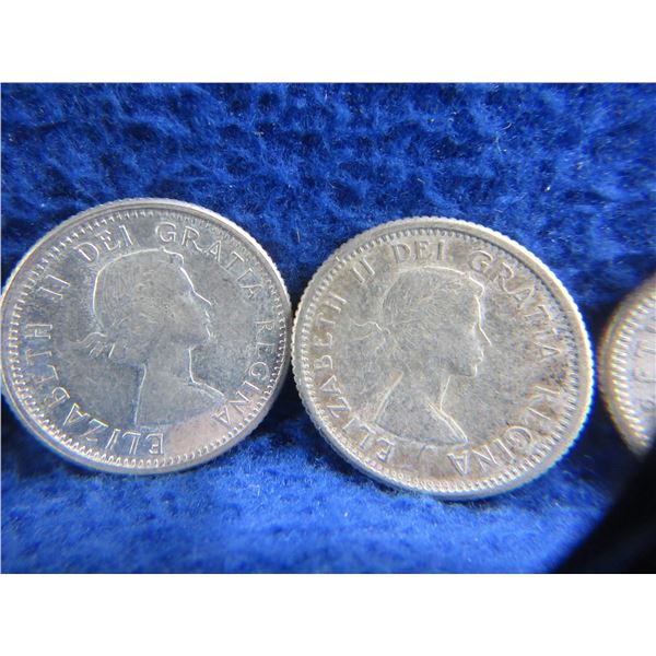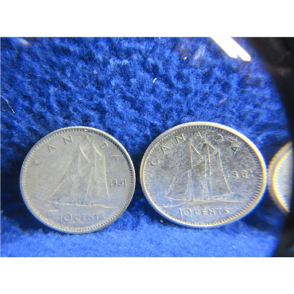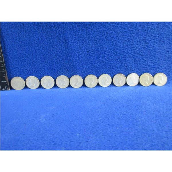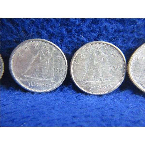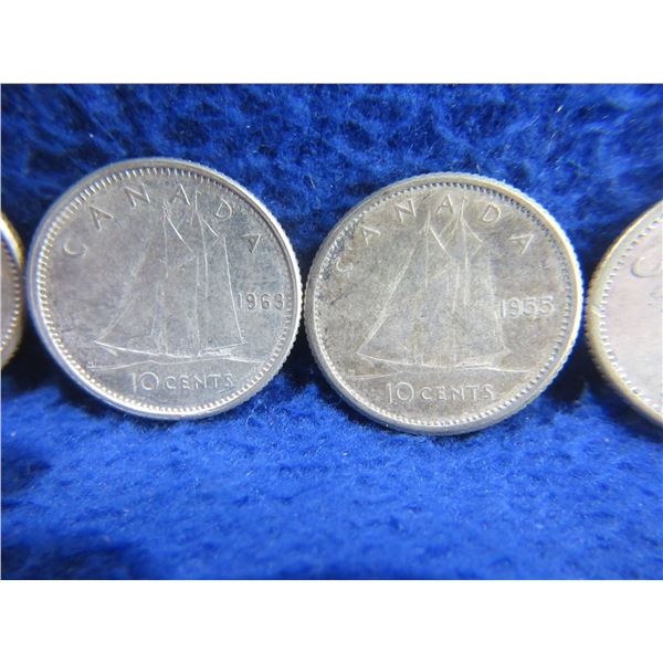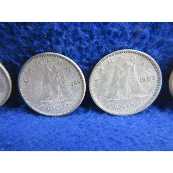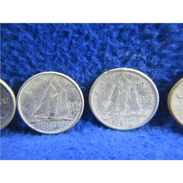 11 Canadian 10 Cent Coins - .800 Silver - Ranging 1951 - 1964
