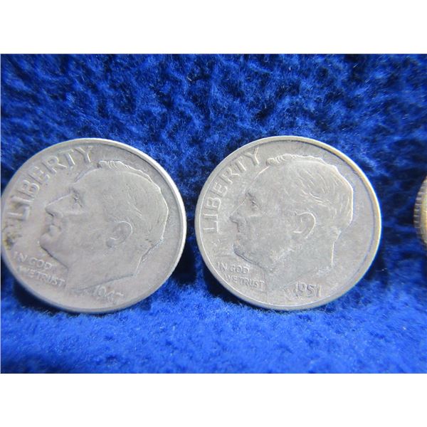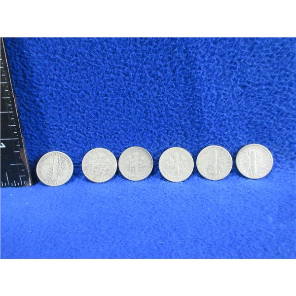 6 USA Dimes - .900 Silver - Ranging 1944 - 1957