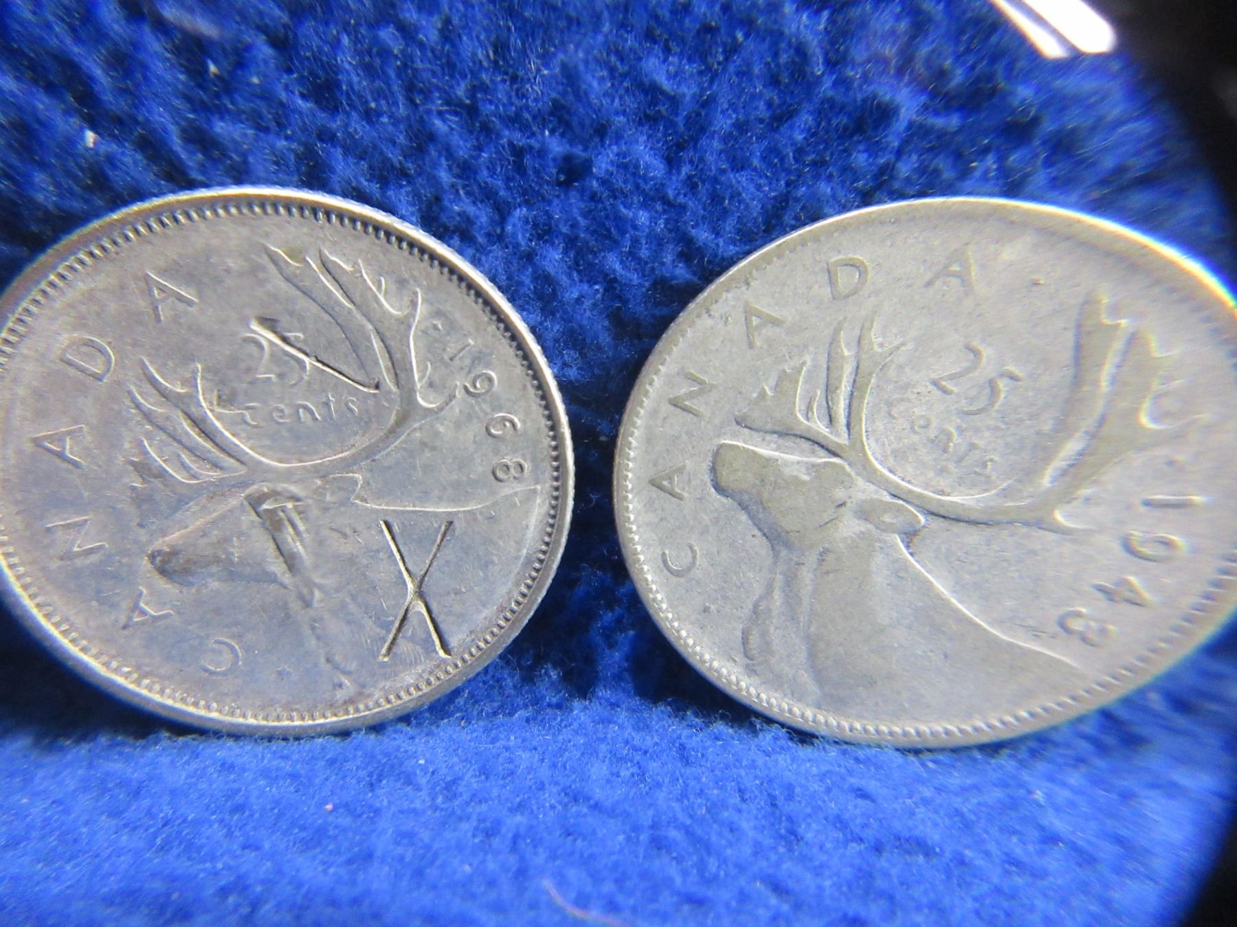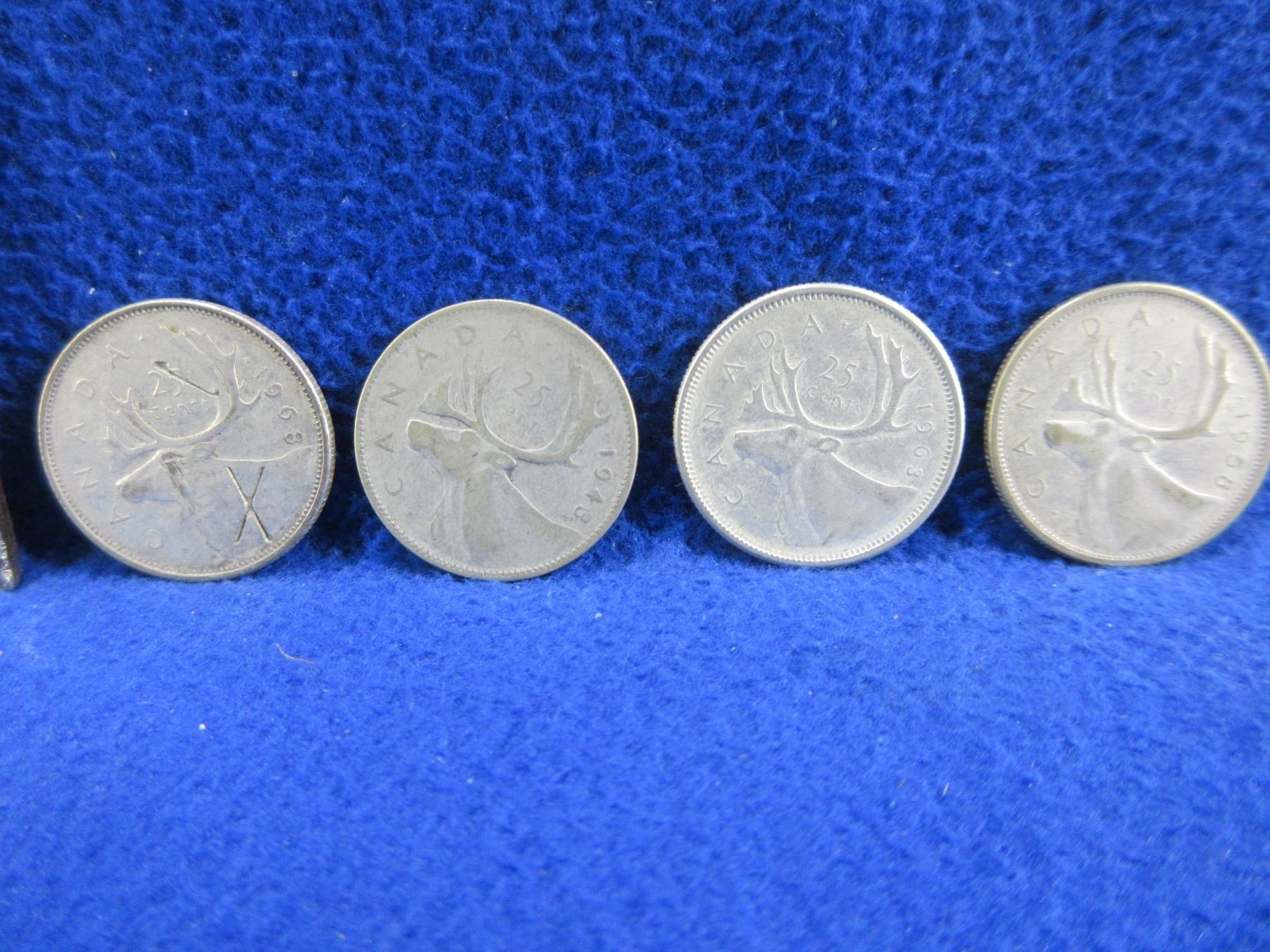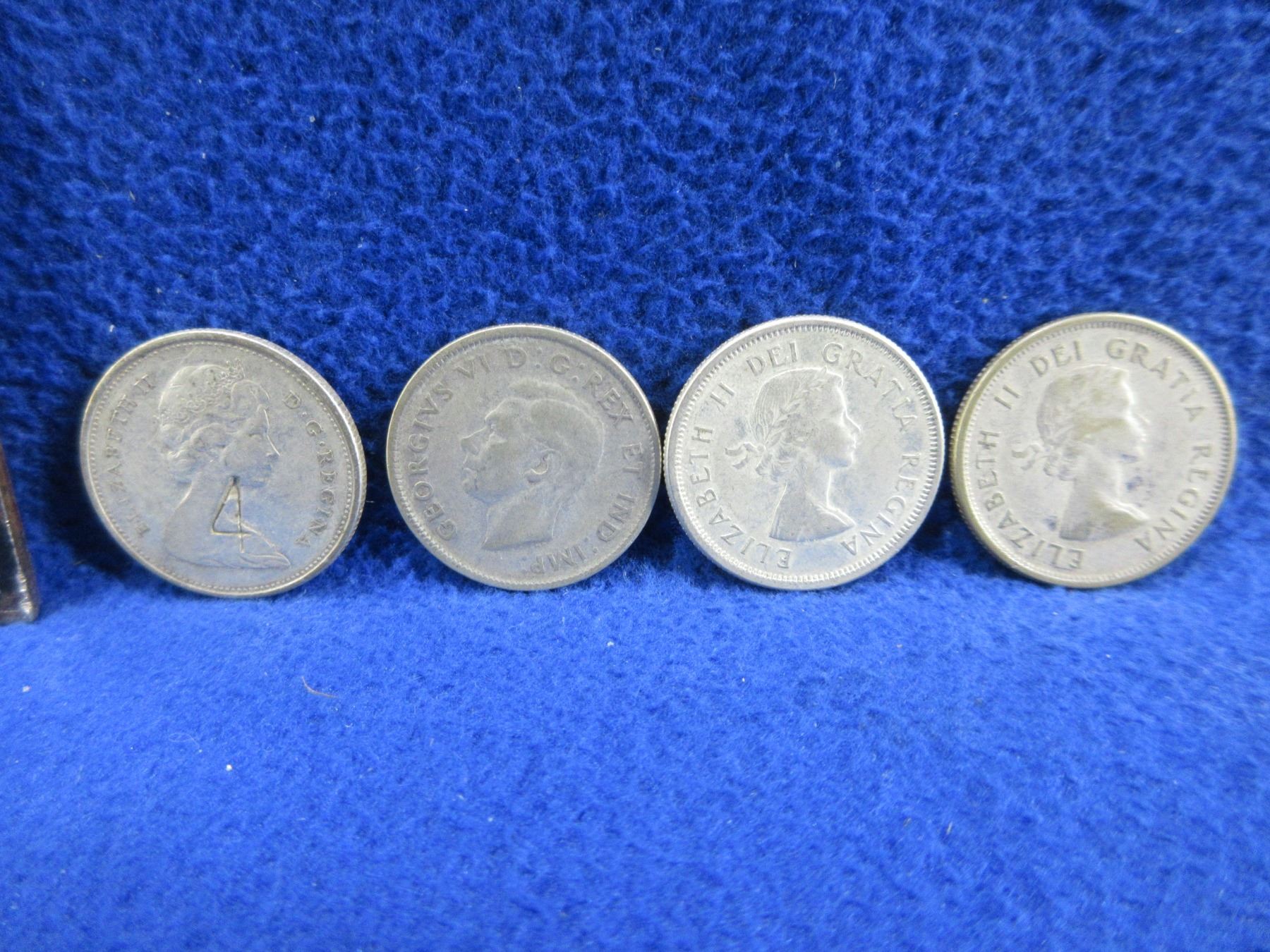 Lot 2247 4 Canadian 25 Cent Coins - .800 Silver - 1943, 1958, 1963, 1968