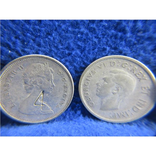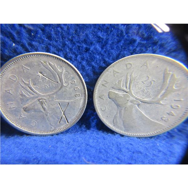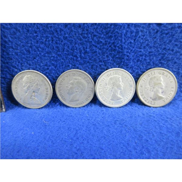 4 Canadian 25 Cent Coins - .800 Silver - 1943, 1958, 1963, 1968