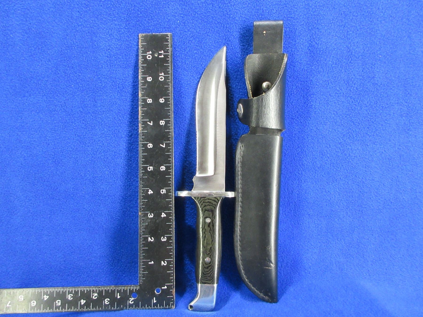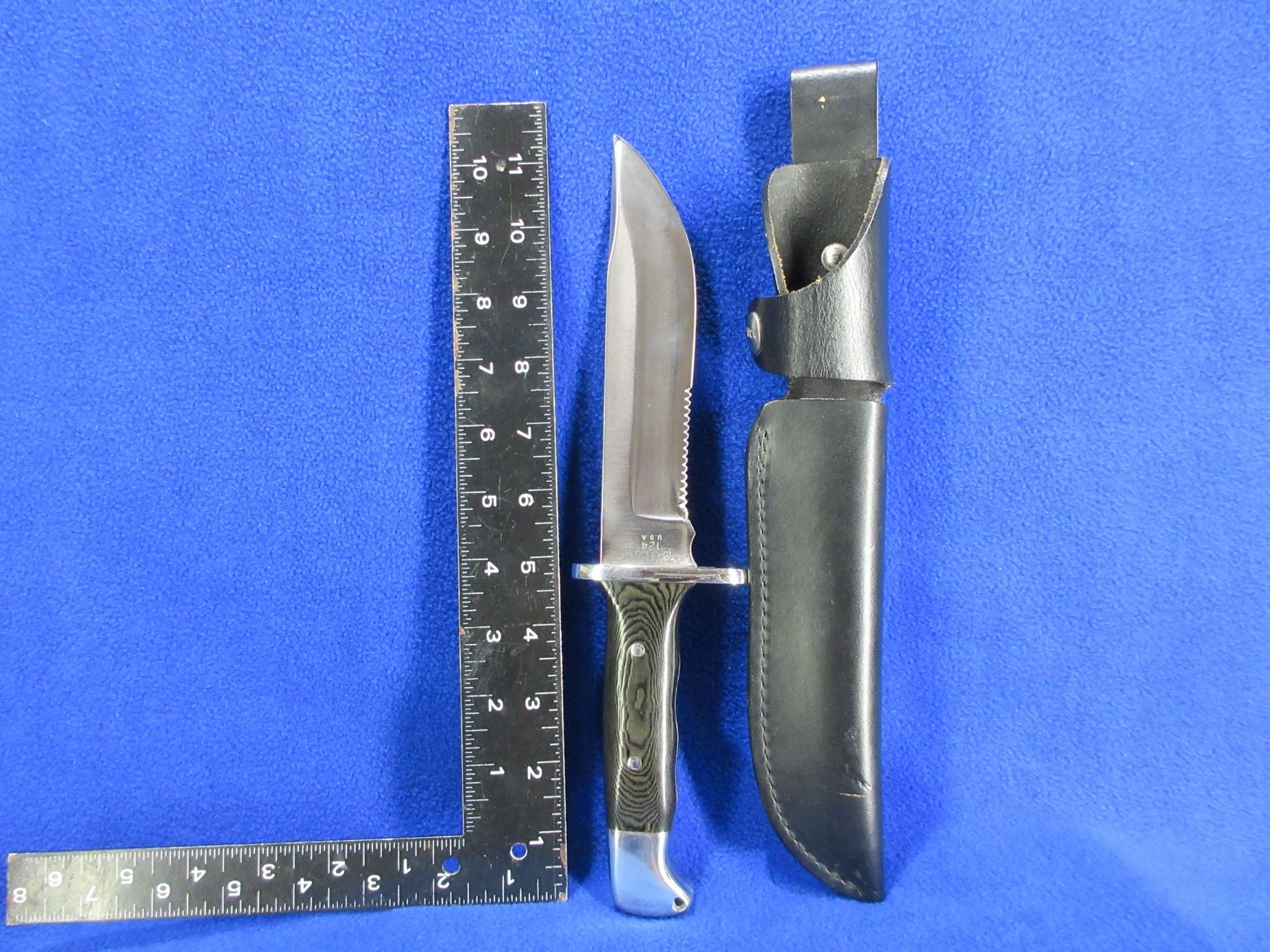 Buck # 124 Frontiersman Fixed Blade Hunting Knife w/ Leather Sheath - Micarta Handle - 6 3/4" Blade, 11 3/4" Total Length - Appears Unused