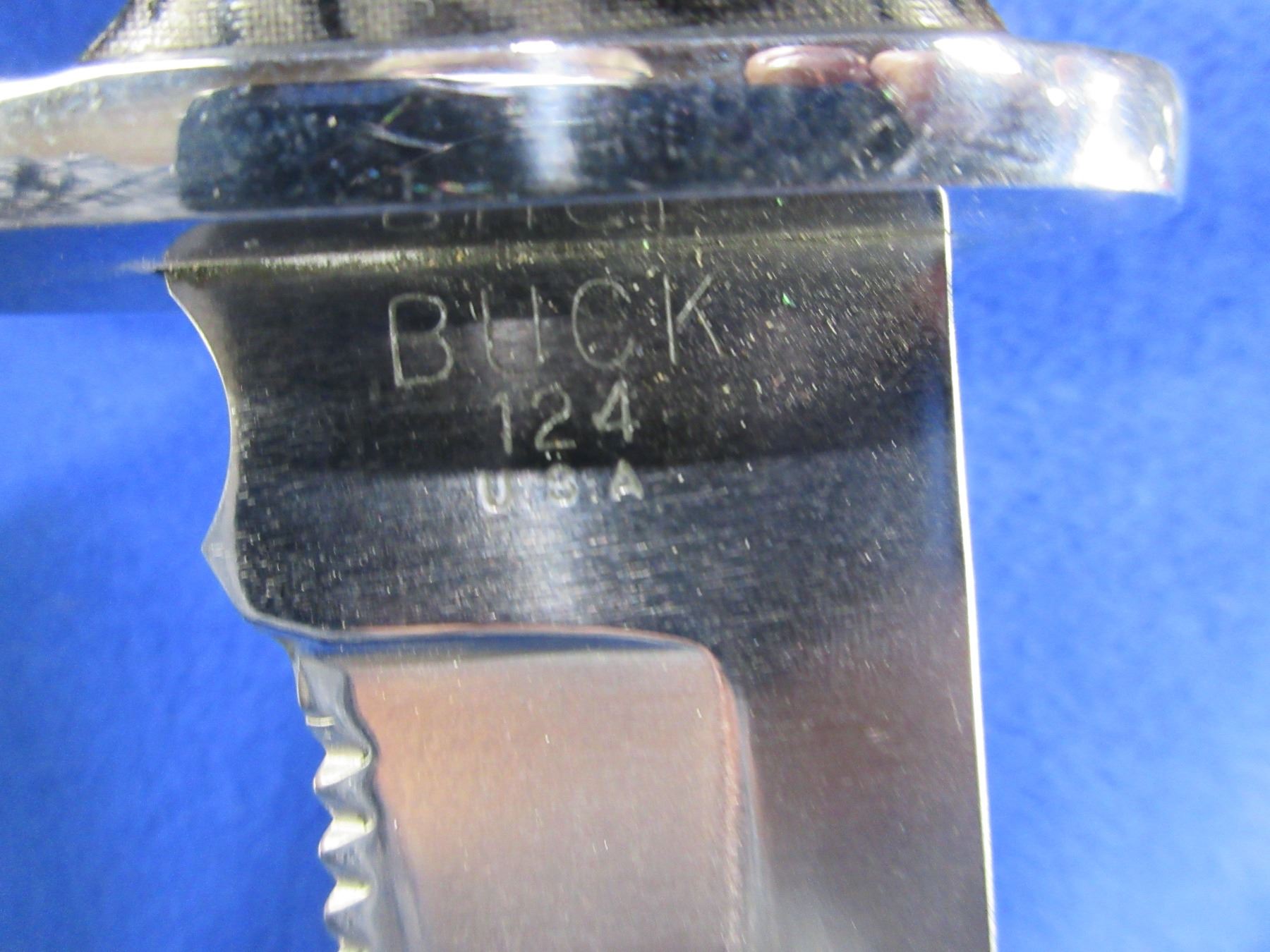 Lot 2252 Buck # 124 Frontiersman Fixed Blade Hunting Knife w/ Leather Sheath