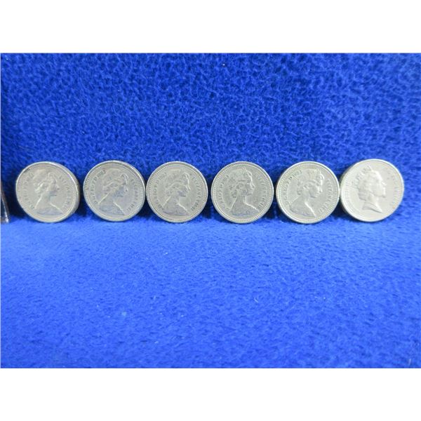 6 United Kingdom One Pound Coins - 1983 x 5, 1985