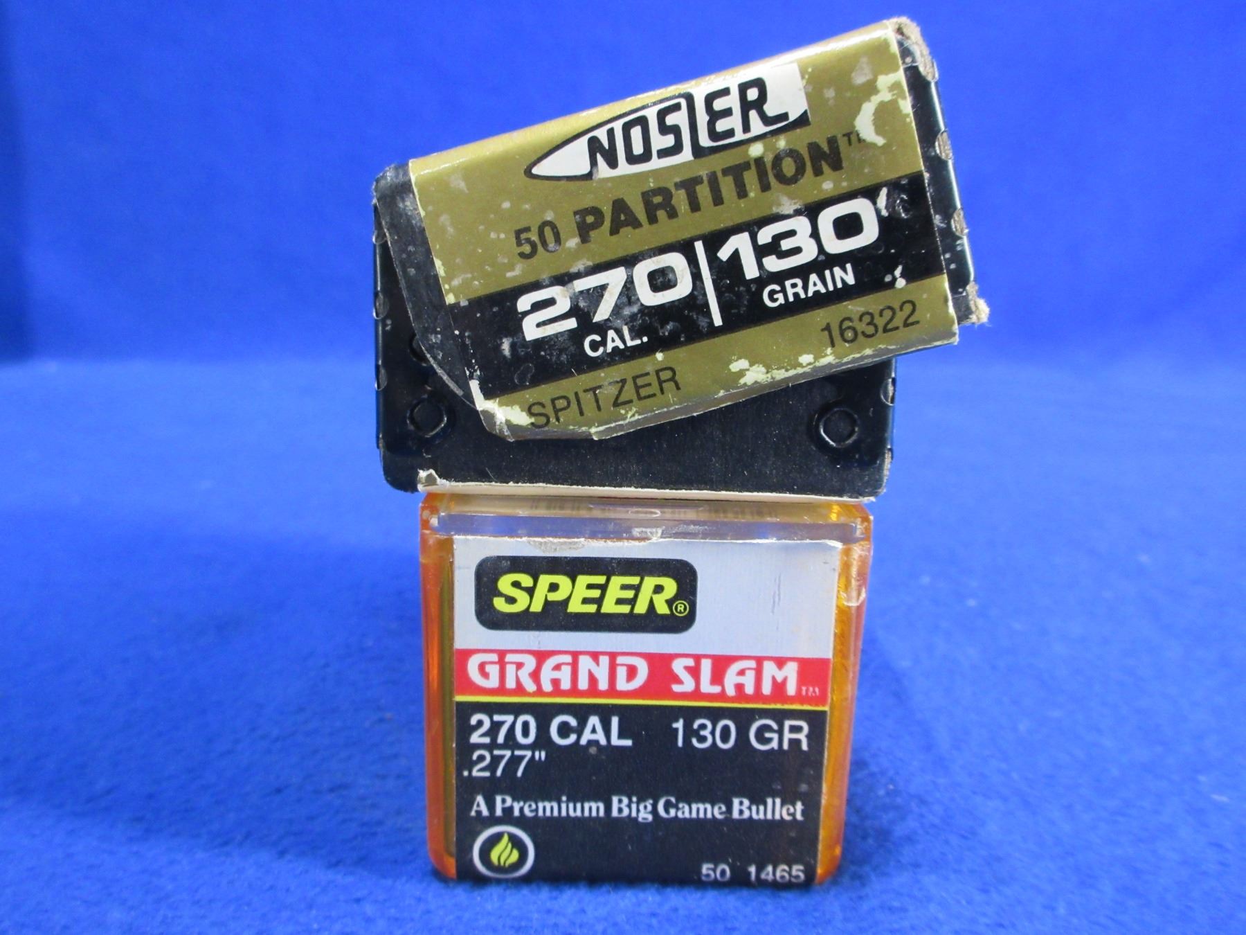 270 Cal. .277" 130gr Speer & Nosler Bullets - Box of 31 (Nosler Spitzer), Box of 50 (Speer Grand Slam)
