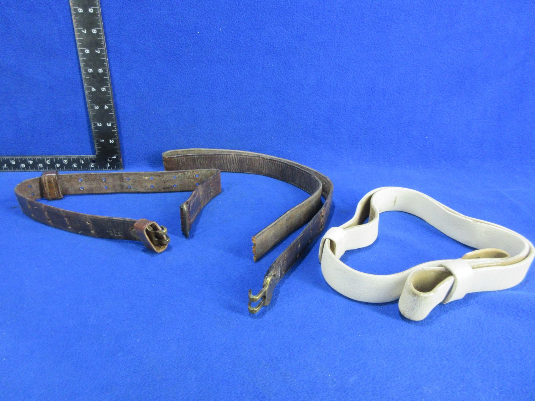 3 Vintage Leather Rifle Slings - 1 is Broken (End is Missing)