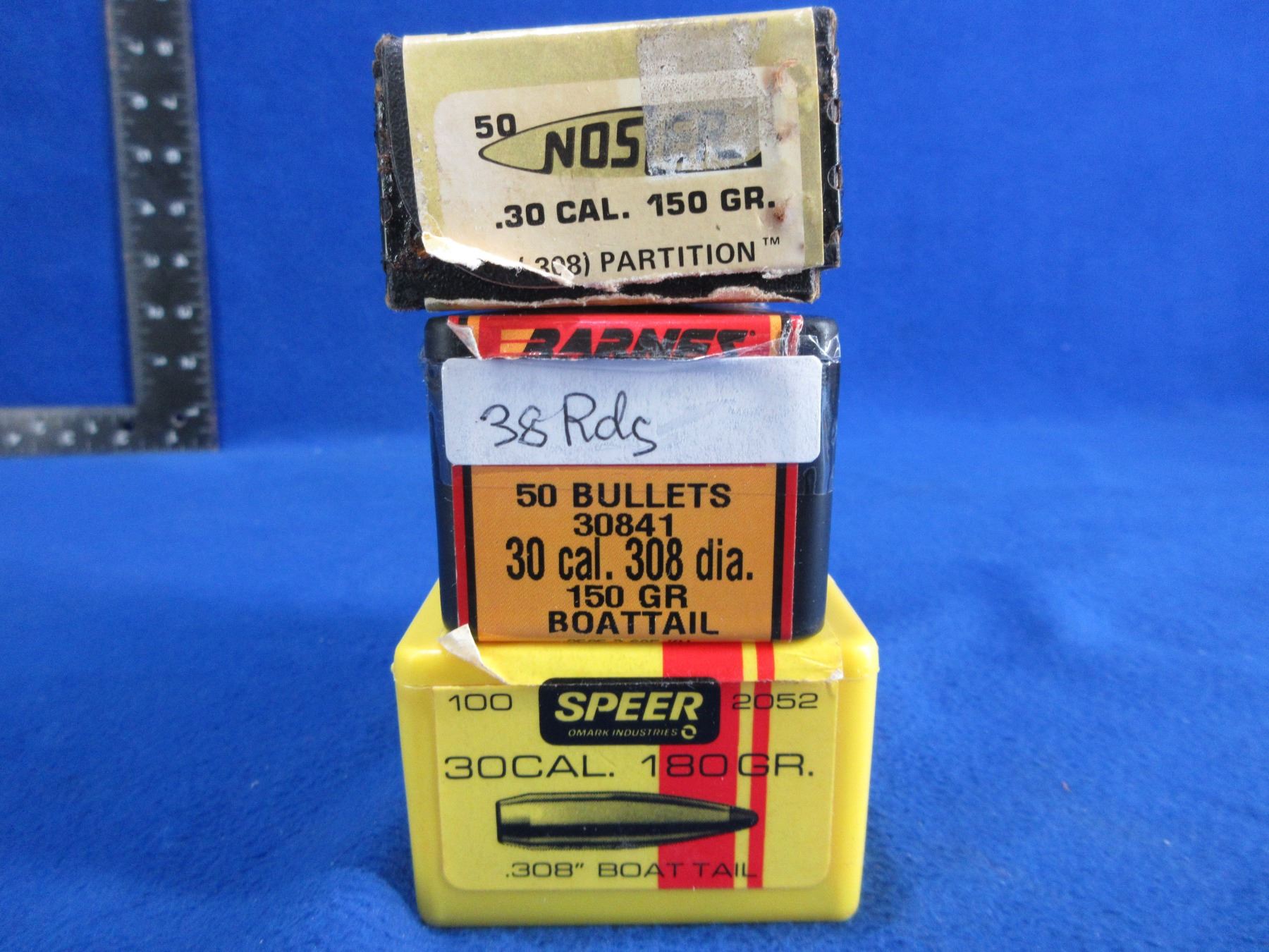 30 Cal. .308" Speer, Nosler and Barnes Bullets - Box of 70 (Speer 180gr BT), Box of 50 (Nosler 150gr ), Box of 38 (Barnes 150gr BT)