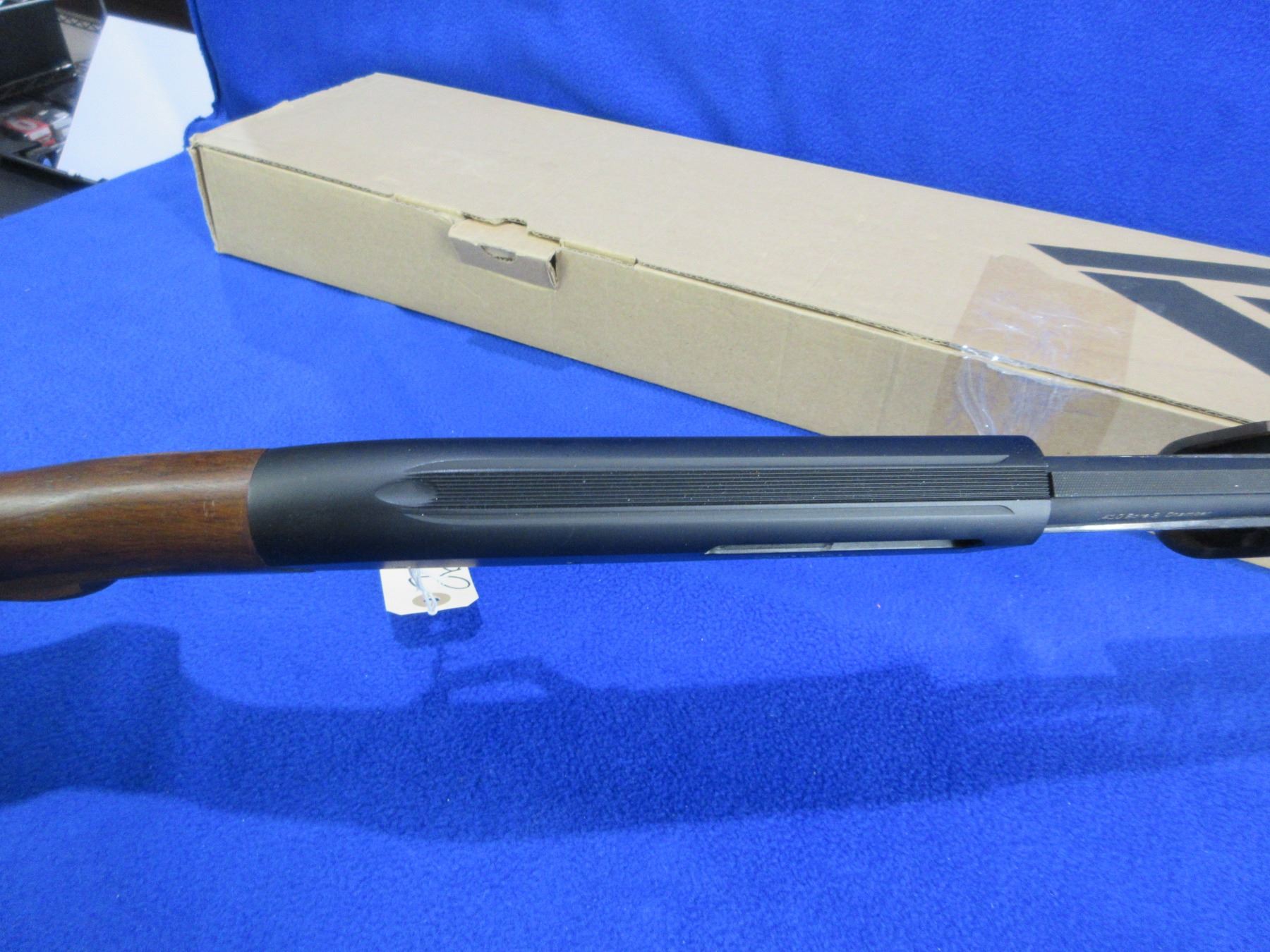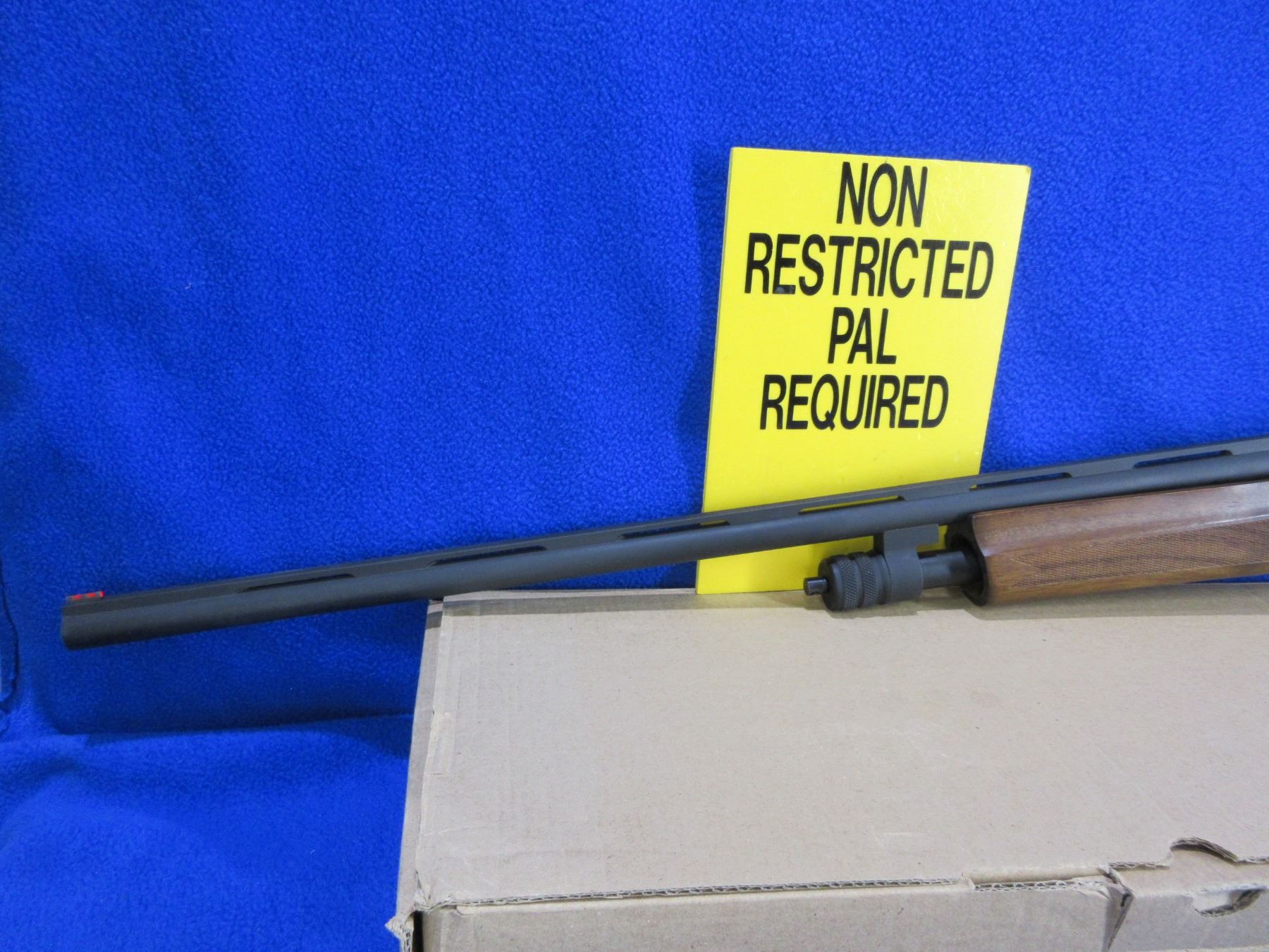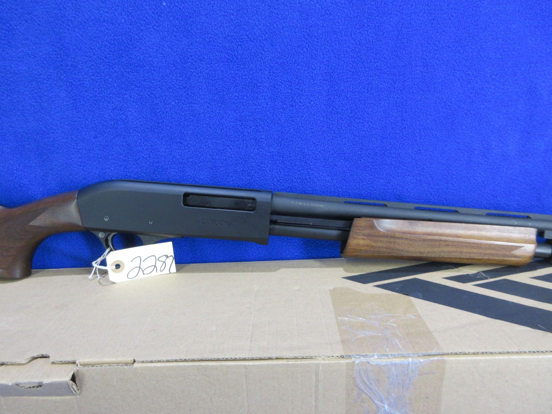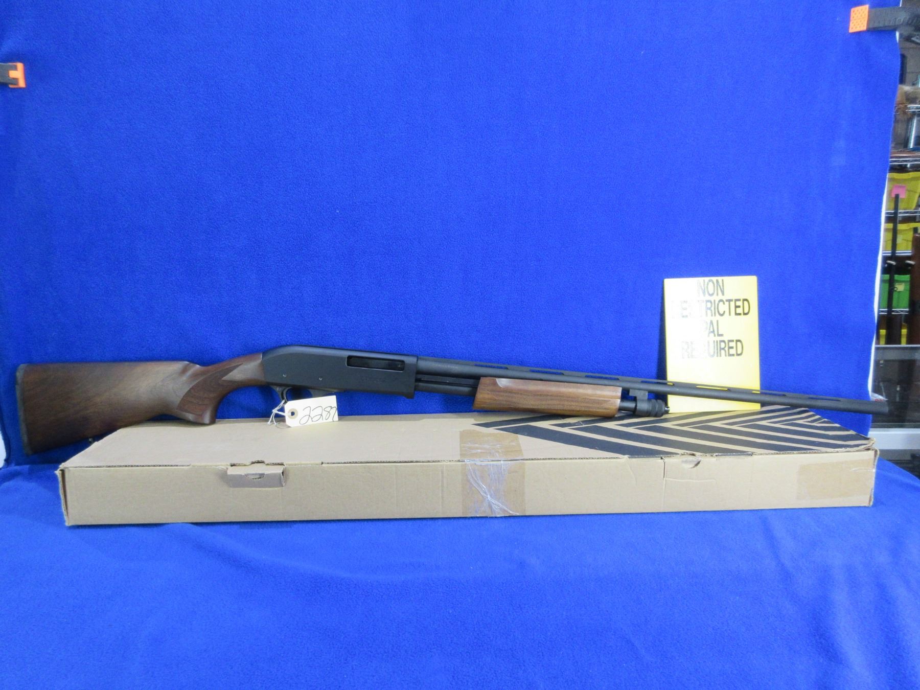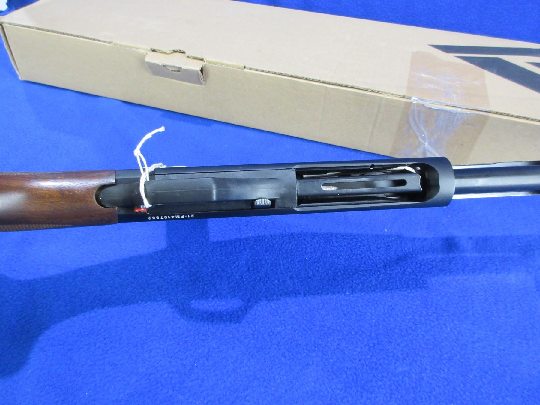 Non-Restricted - Khan Arms Canuck in 410 Ga. 3" - This is a pump action shotgun with tube magazine and removable chokes, action appears to be in good to very good working order. Vent rib barrel is 26", bore is good to very good, black finish is good with some light scratches, has fiber optic front sight, stock is very good, length of pull is 14", forearm is very good, rubber butt plate good, comes with swivel studs, five chokes, choke wrench user manual and original box. Ser # 21-PM4107582