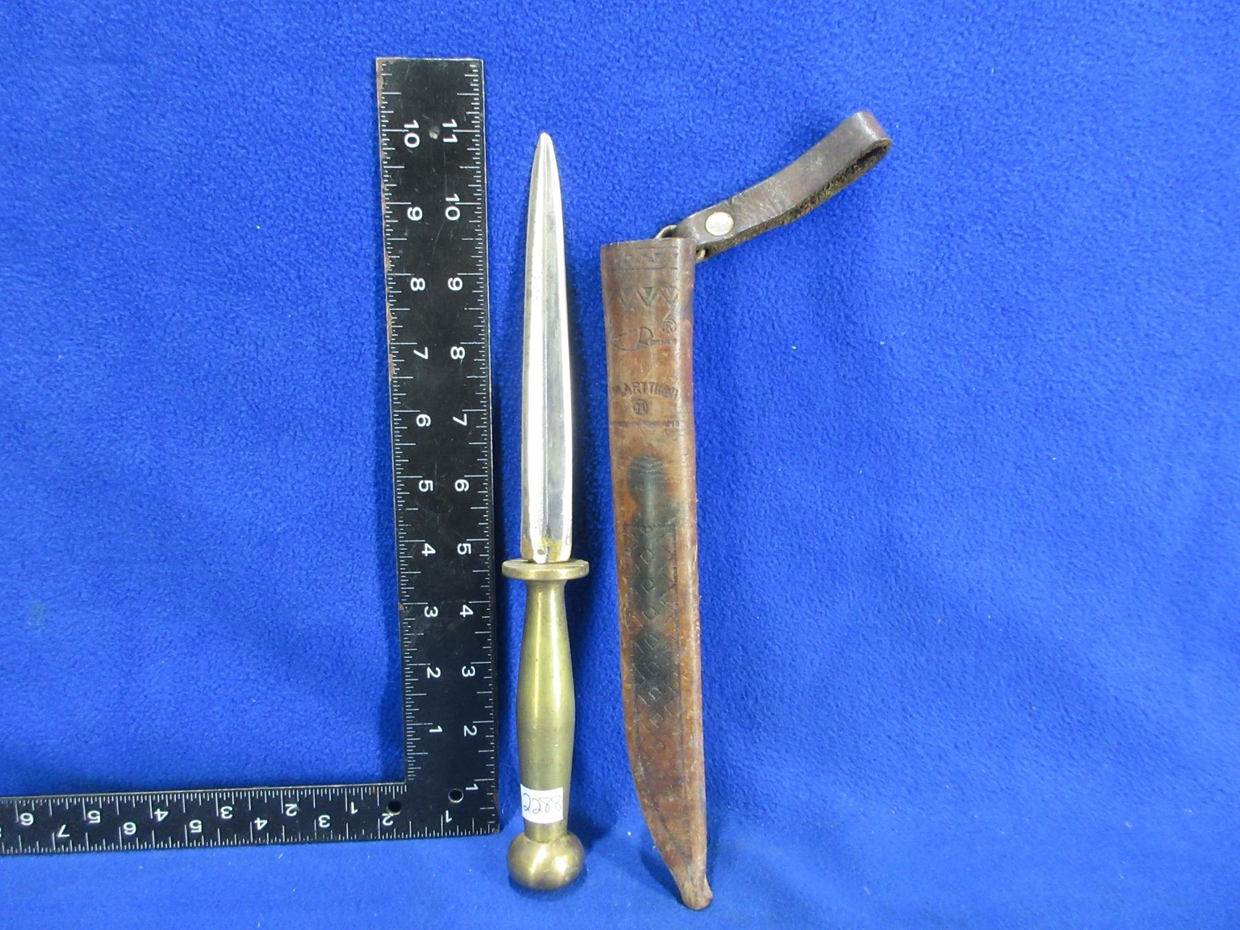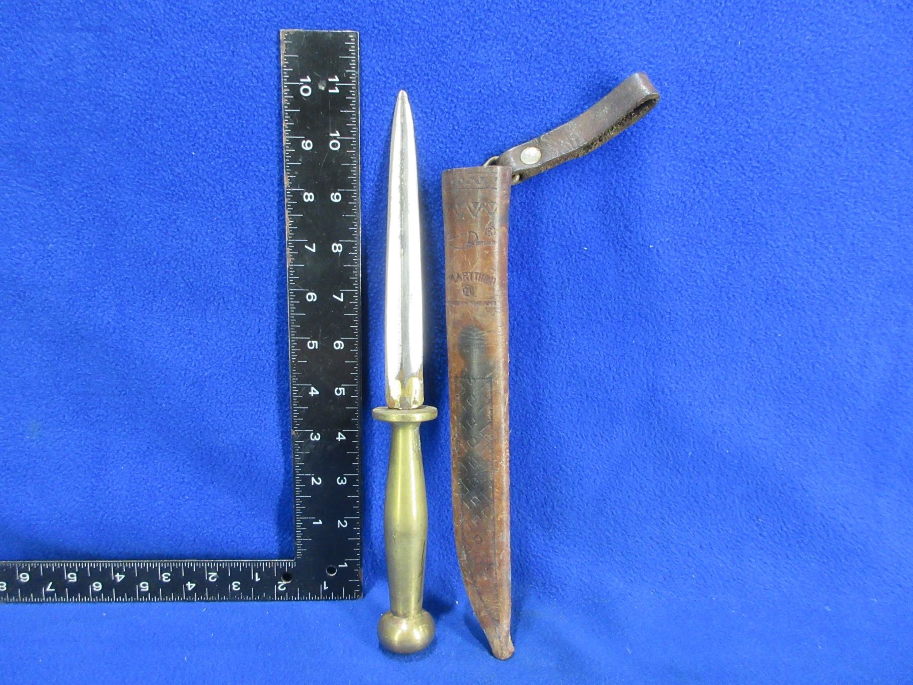 Lot 2288 Dagger with Brass Handle & Incorrect Leather Sheath - 6 1/4" Blade