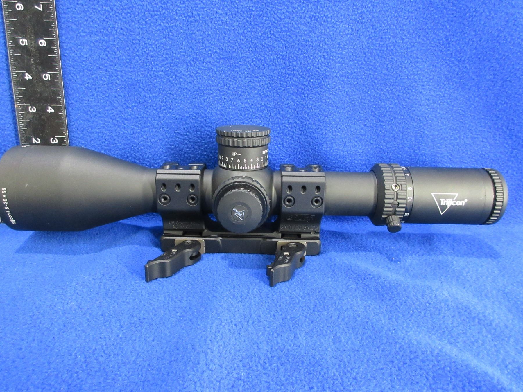 NEW - Trijicon 4.5-30x56 SFP Illuminated Scope - New condition as scope taken off Never Fired Cadex Defense CDX-33 - comes with Spuhr 6mil/20 MOA 34mm H:38mm/1.5″ quick detach rings with side clamp and dual levers on the left side of the mount, approx retail of scope and mount $4000.00
