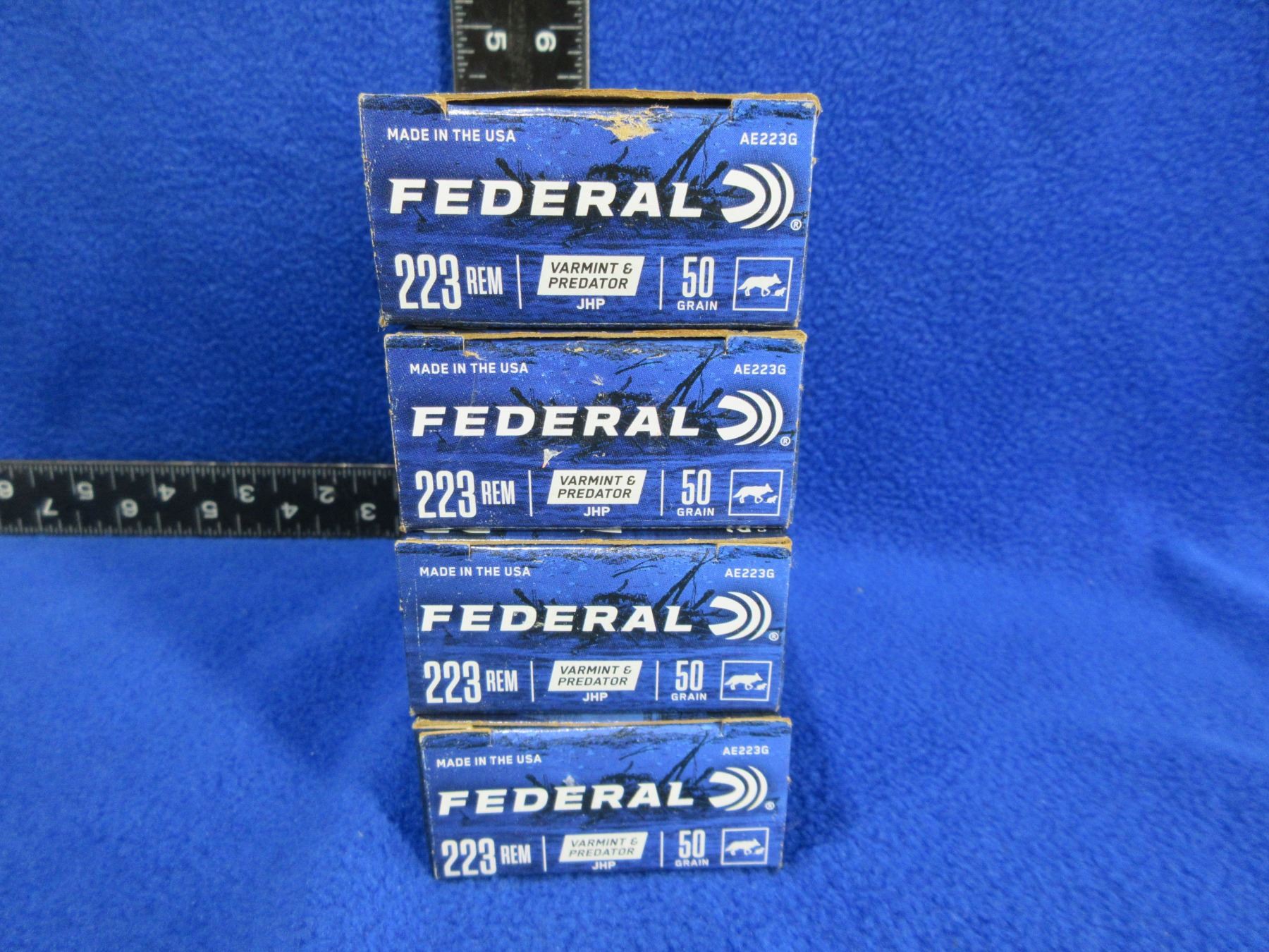 223 Rem. 50gr JHP Federal (Pick Up or Ship by UPS Only) Cartridges - 4 Boxes of 20