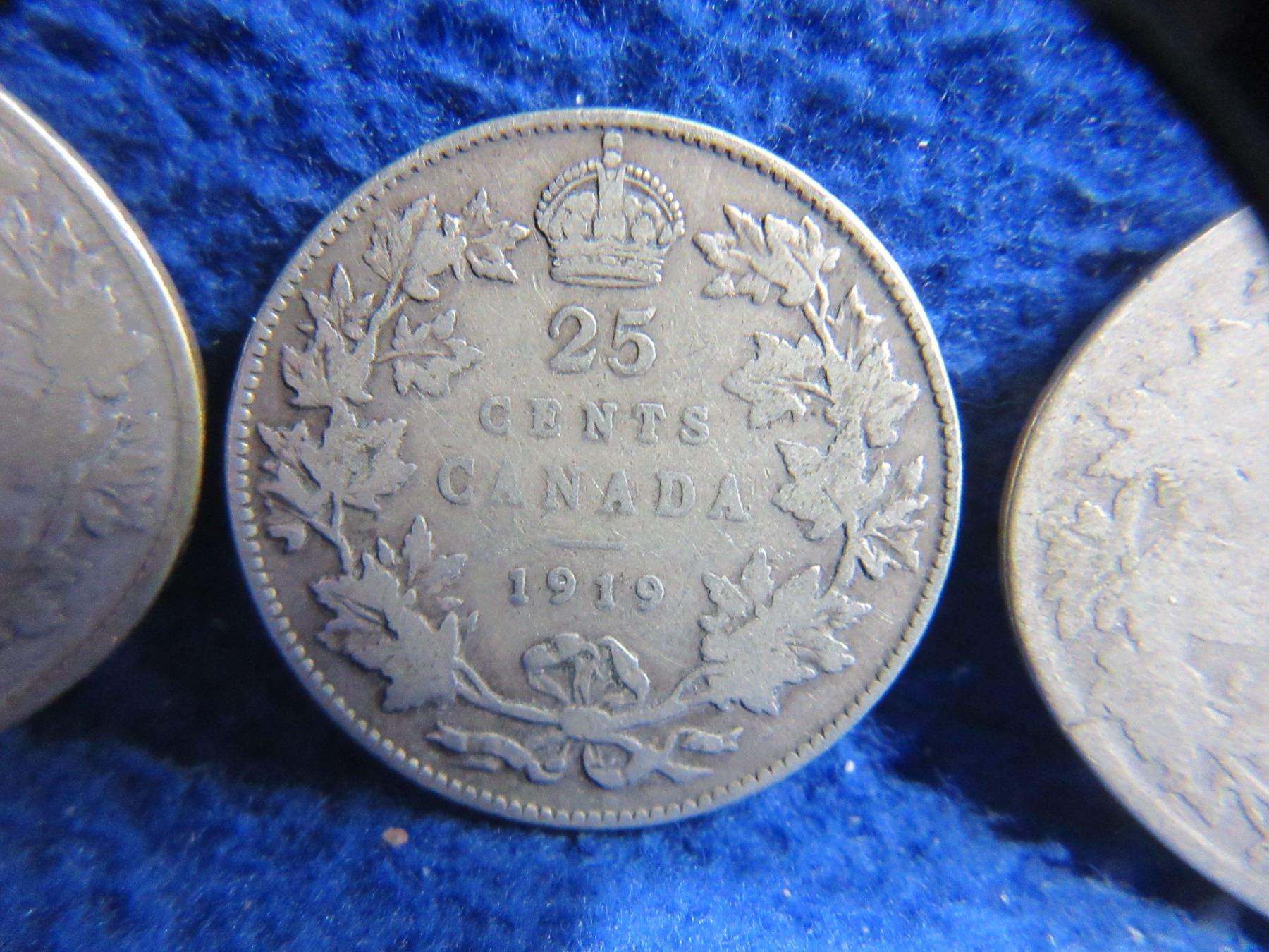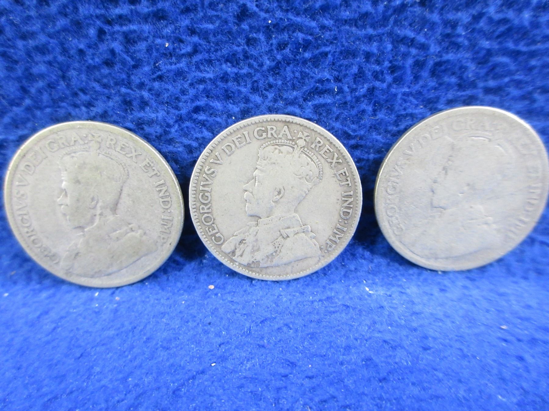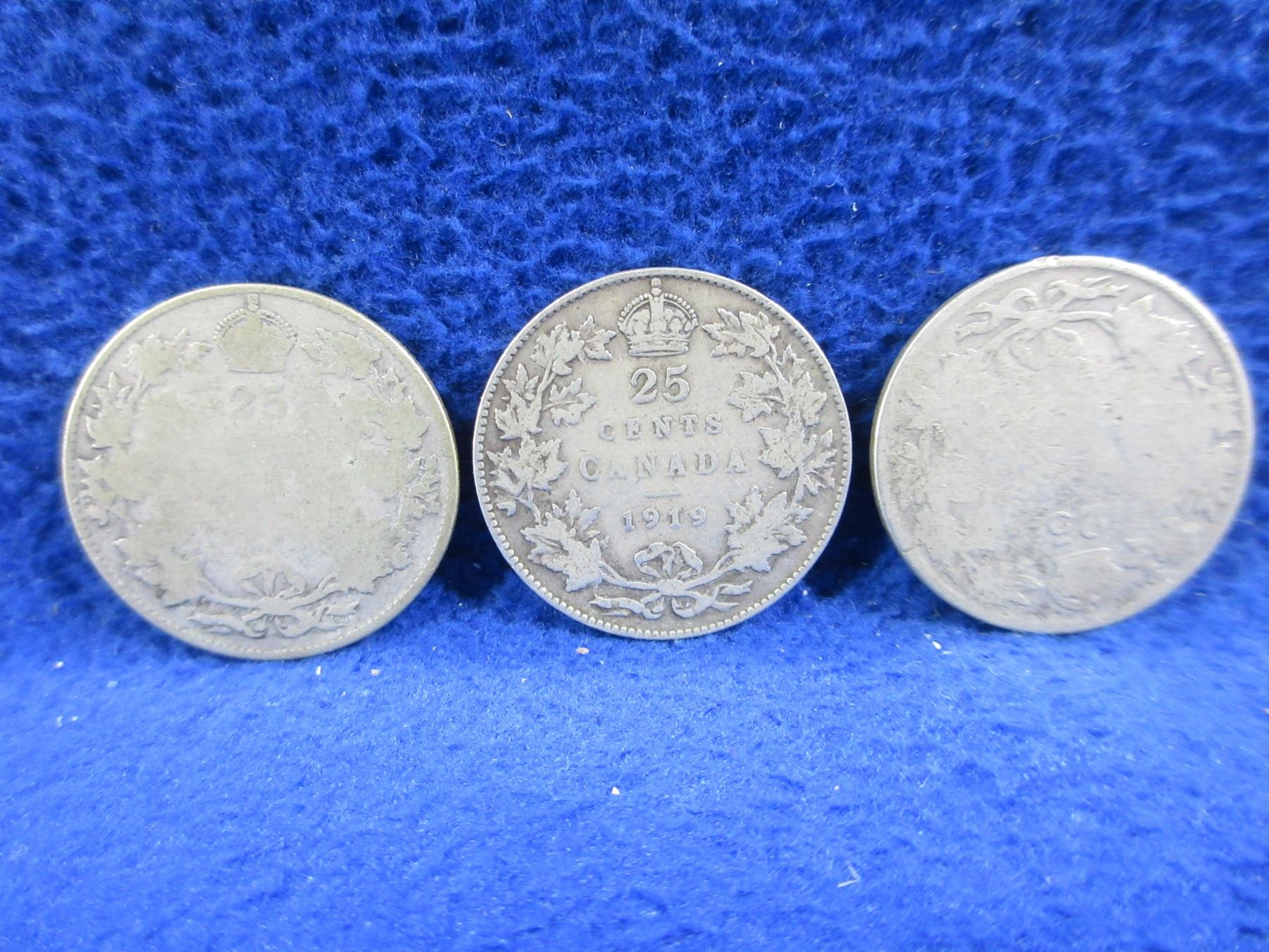 Lot 2335 3 Canadian 25 Cent Coins - "George V" .925 Silver - 1919 x 2, Date Illegible