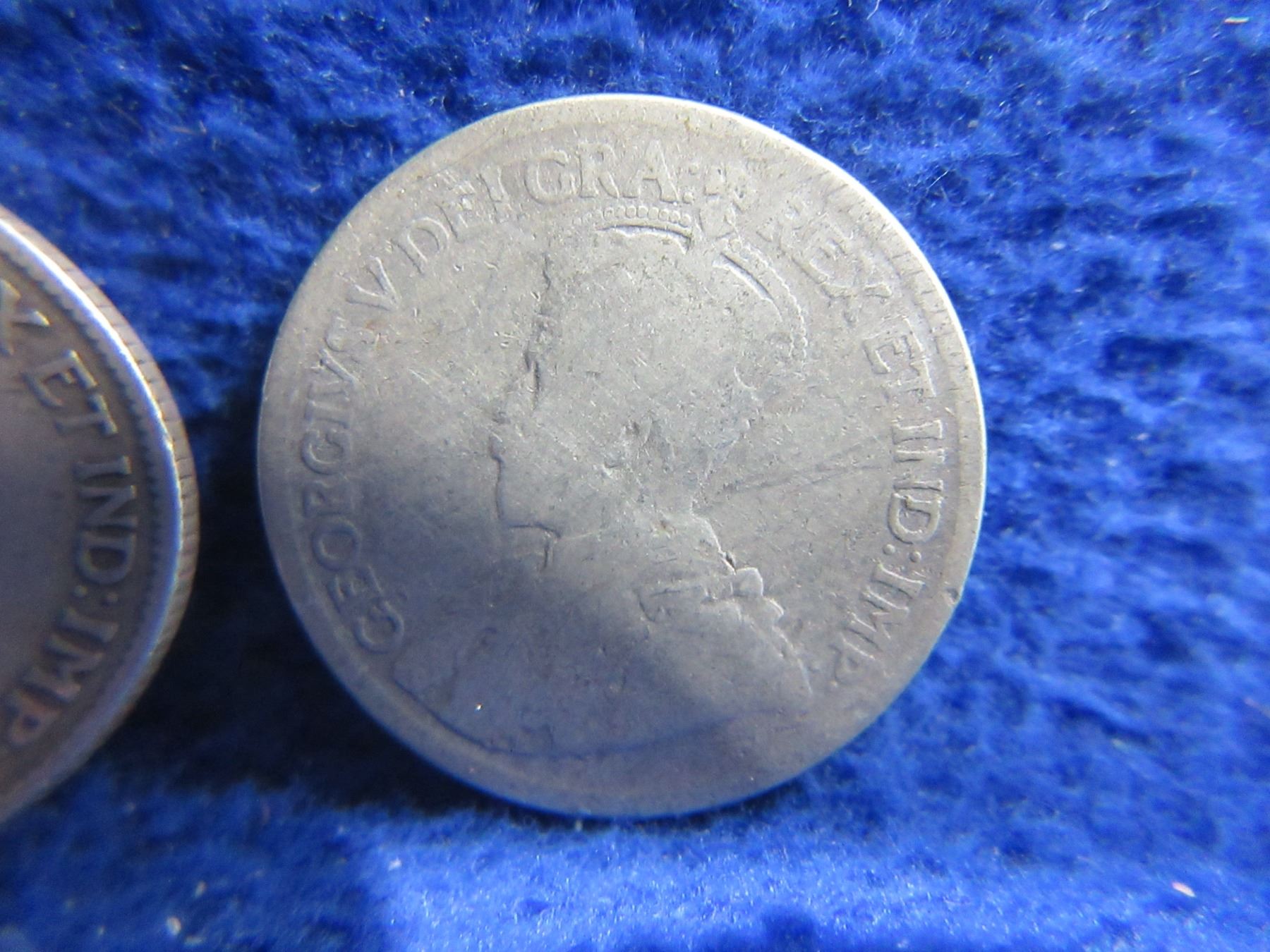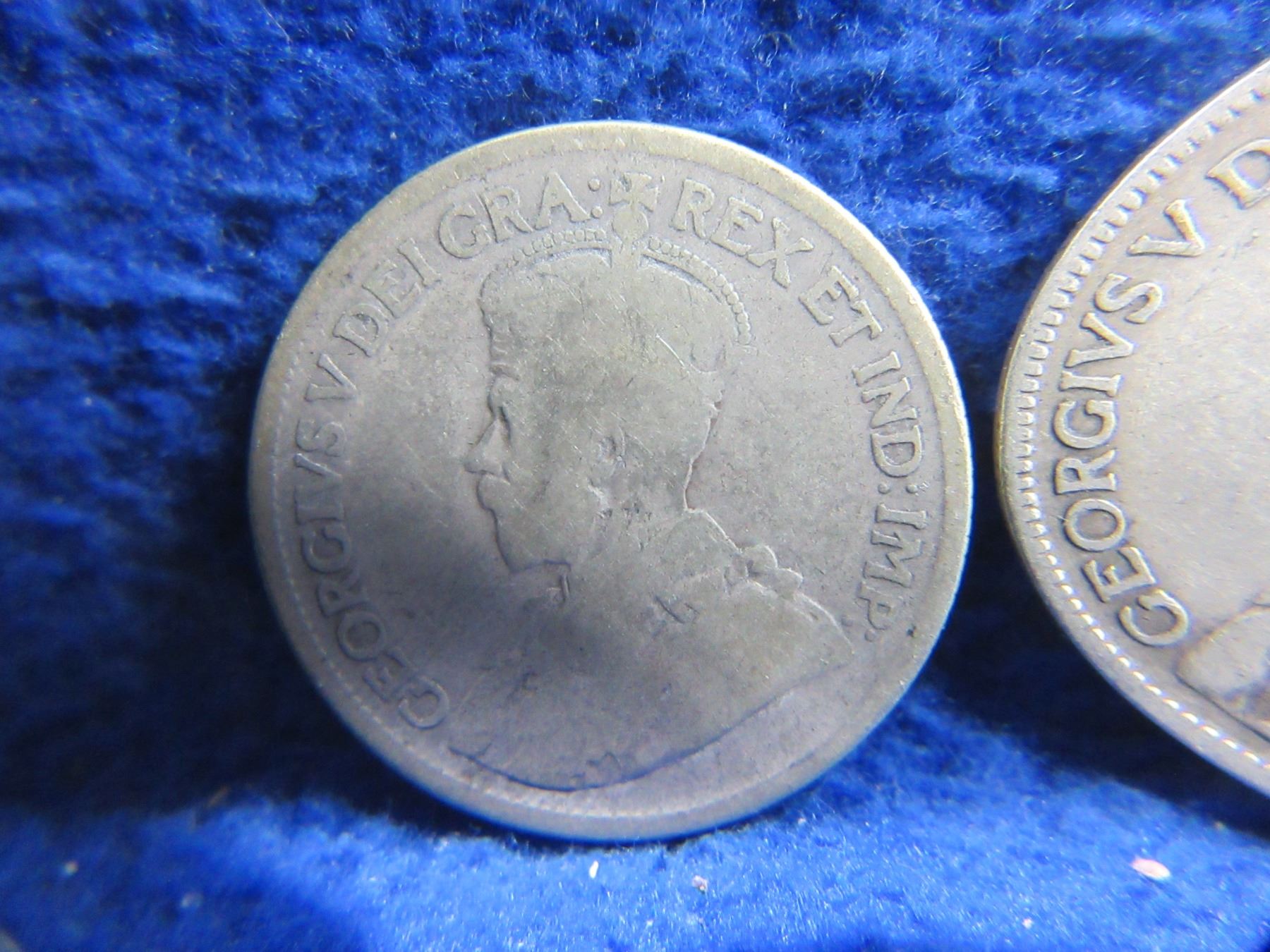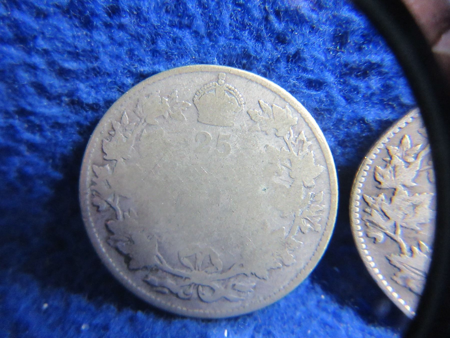 Lot 2335 3 Canadian 25 Cent Coins - "George V" .925 Silver - 1919 x 2, Date Illegible