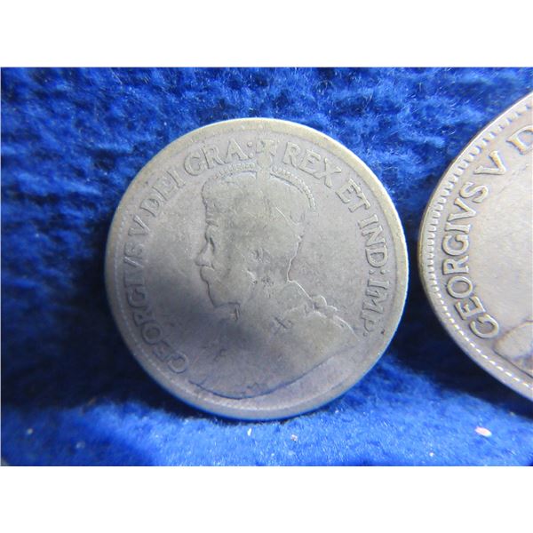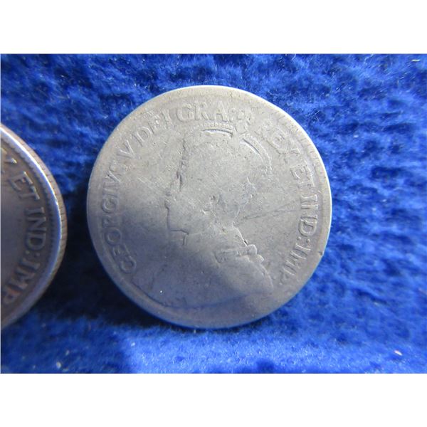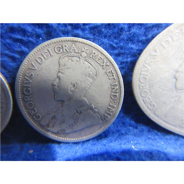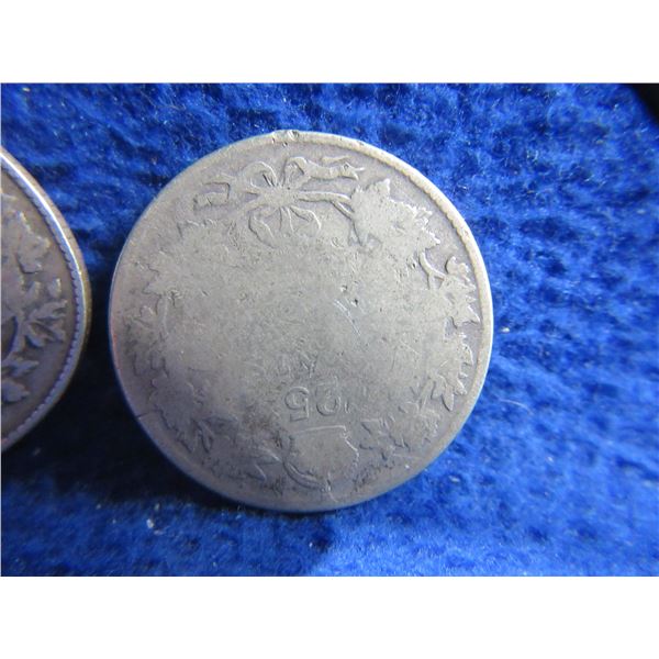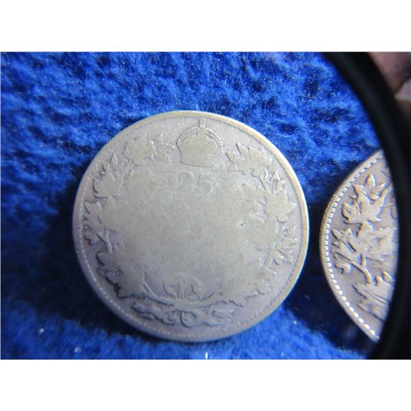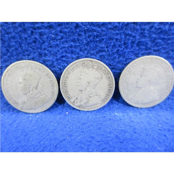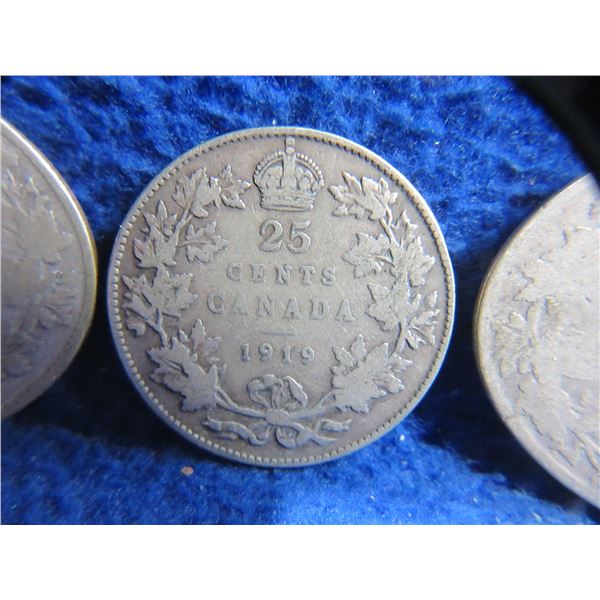 3 Canadian 25 Cent Coins - "George V" .925 Silver - 1919 x 2, Date Illegible