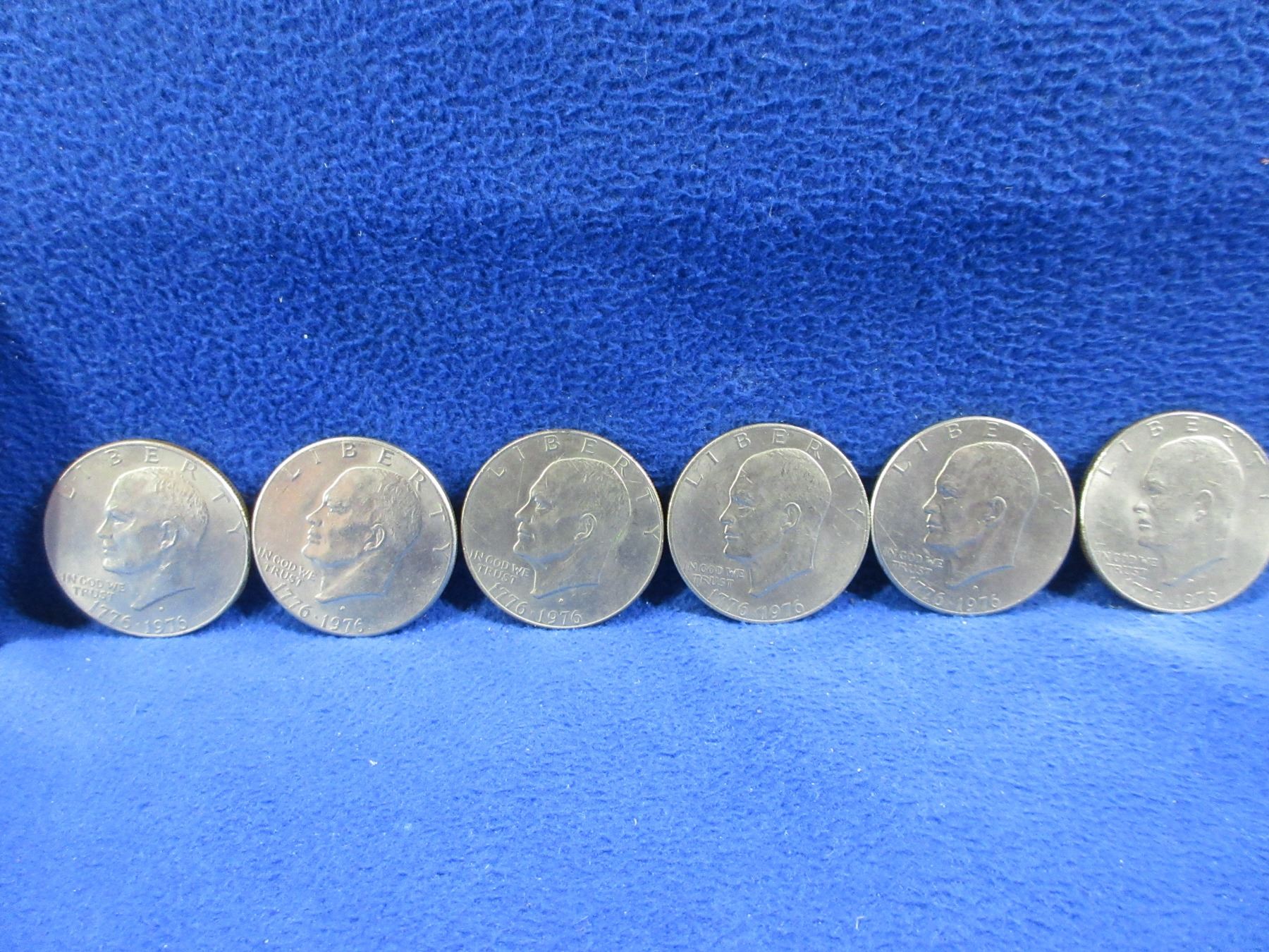 6 - 1776-1976 USA One Dollar Coins "Eisenhauer Dollar" (Bicentennial)