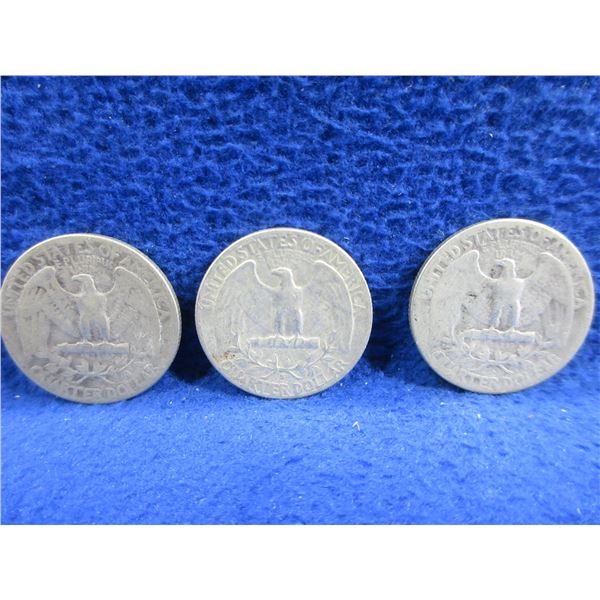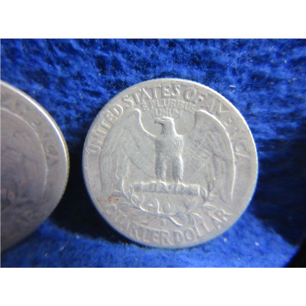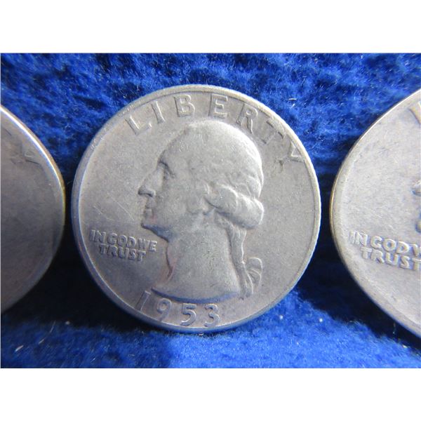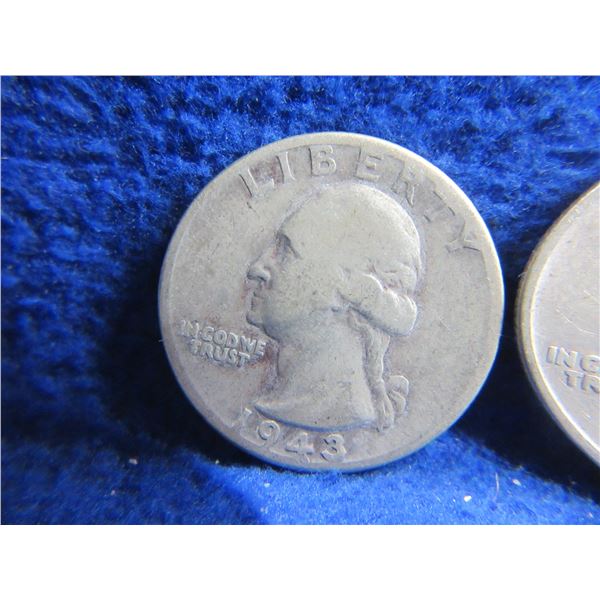 3 USA 1/4 Dollar Coins "Washington Silver Quarter" - .900 Silver - 1943 x 2, 1953