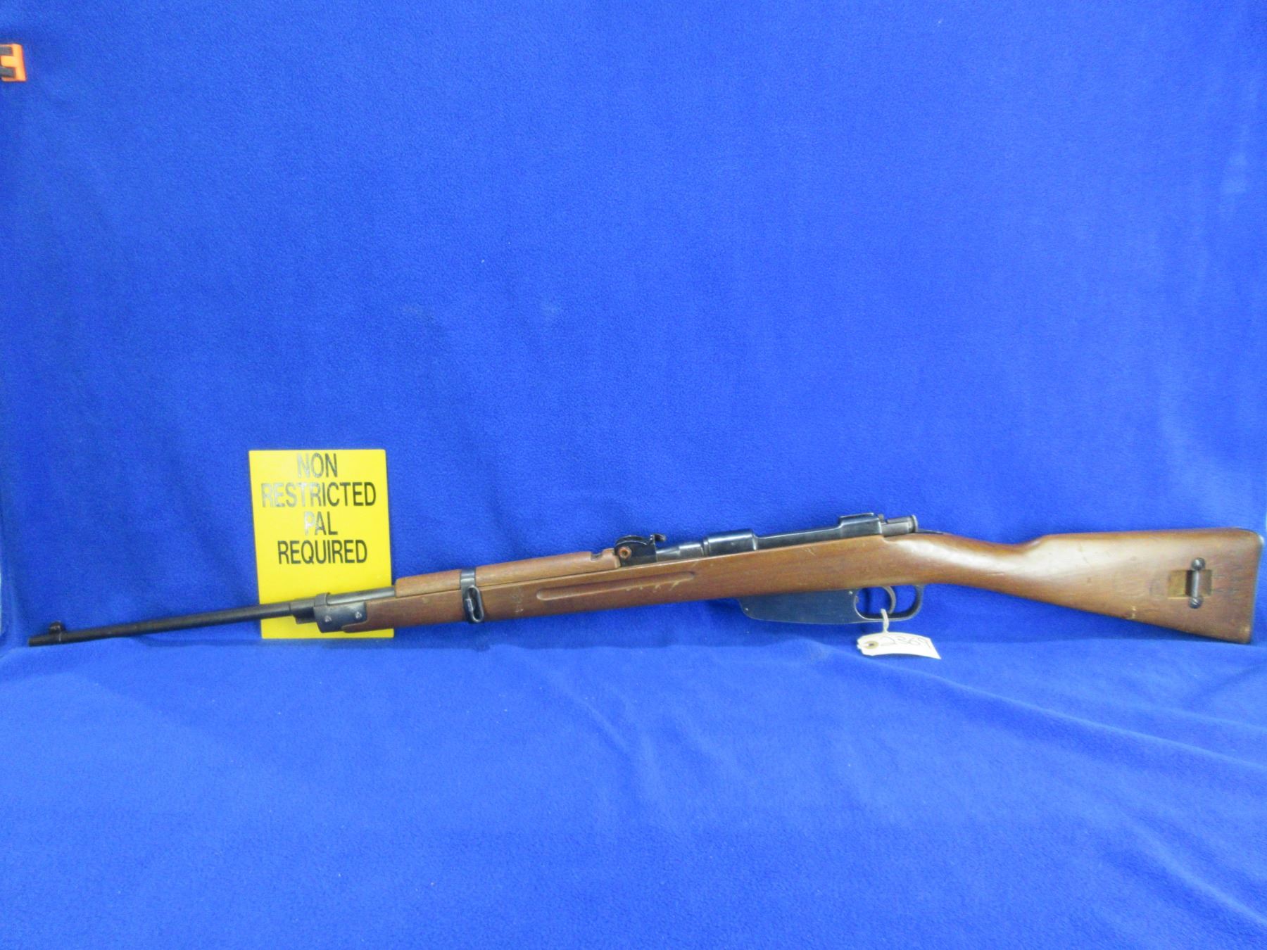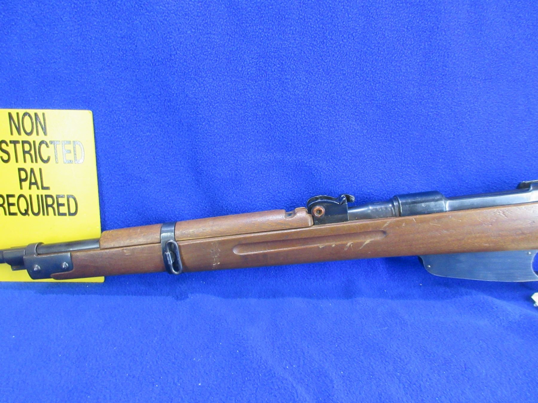 Non-Restricted - Carcano Model FAT 42 in 6.5x52 - This is a bolt action rifle with internal magazine, action appears to be in good working order. Barrel is 27", rifling is good, bluing is good, has both sights, stock and hand guard are good with many usage marks, length of pull is 13", metal butt plate good, comes with swivels and cleaning rod in the butt. Ser #S488