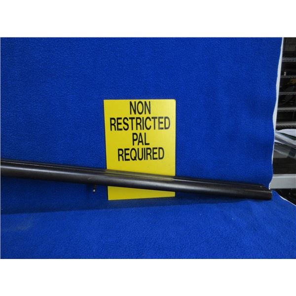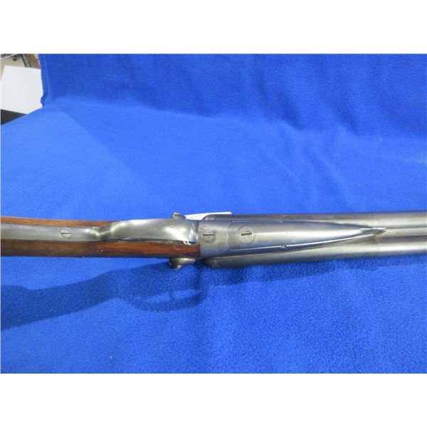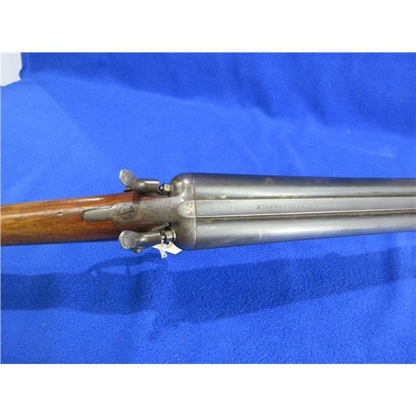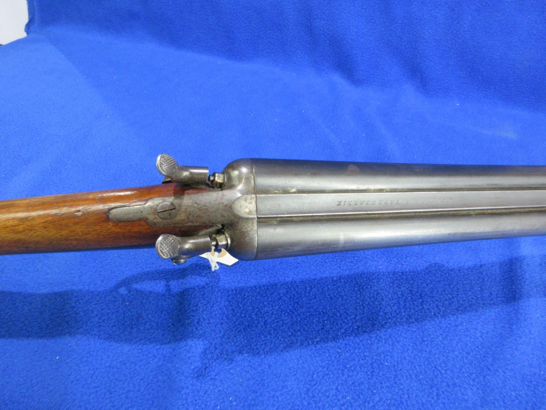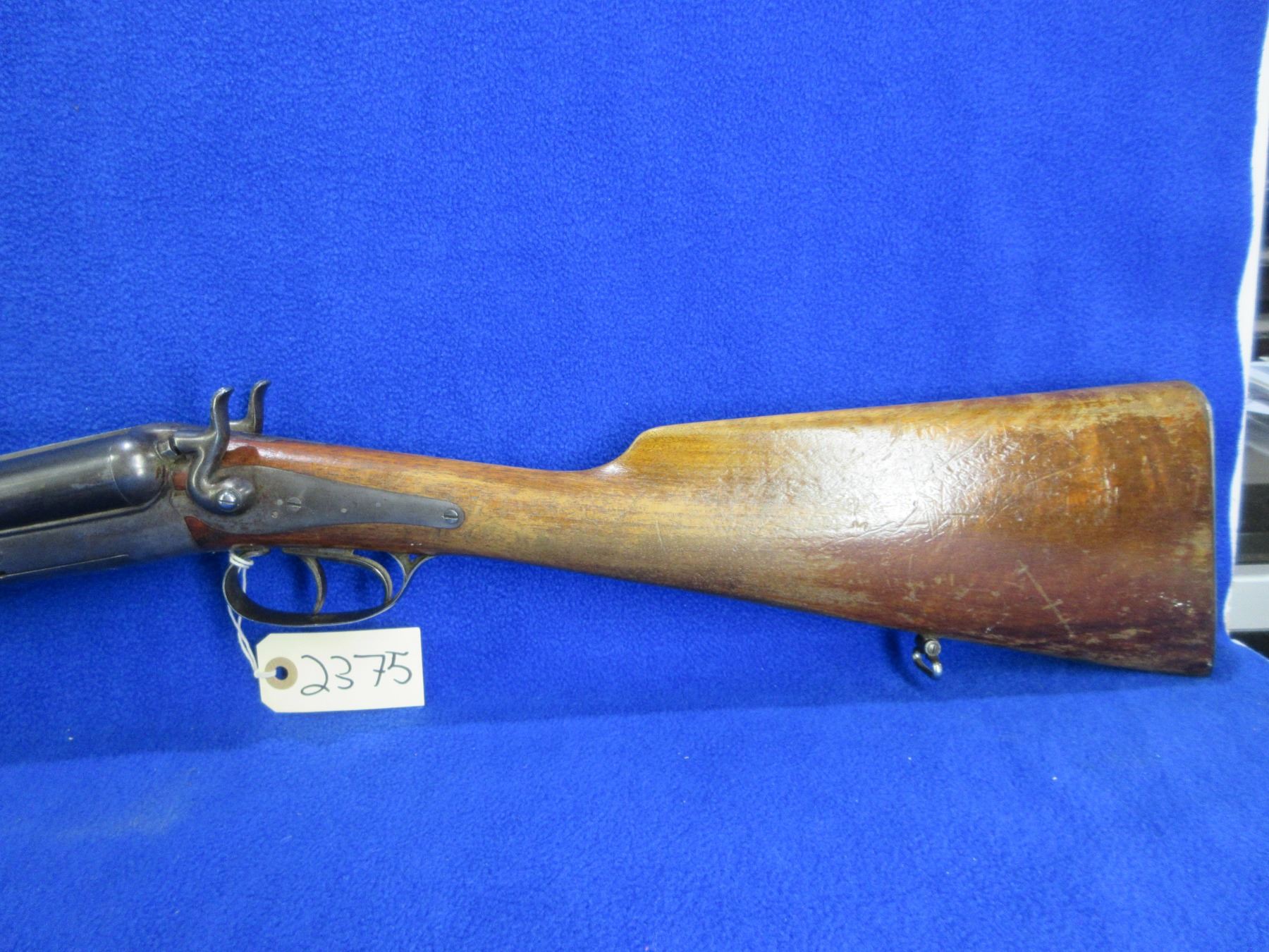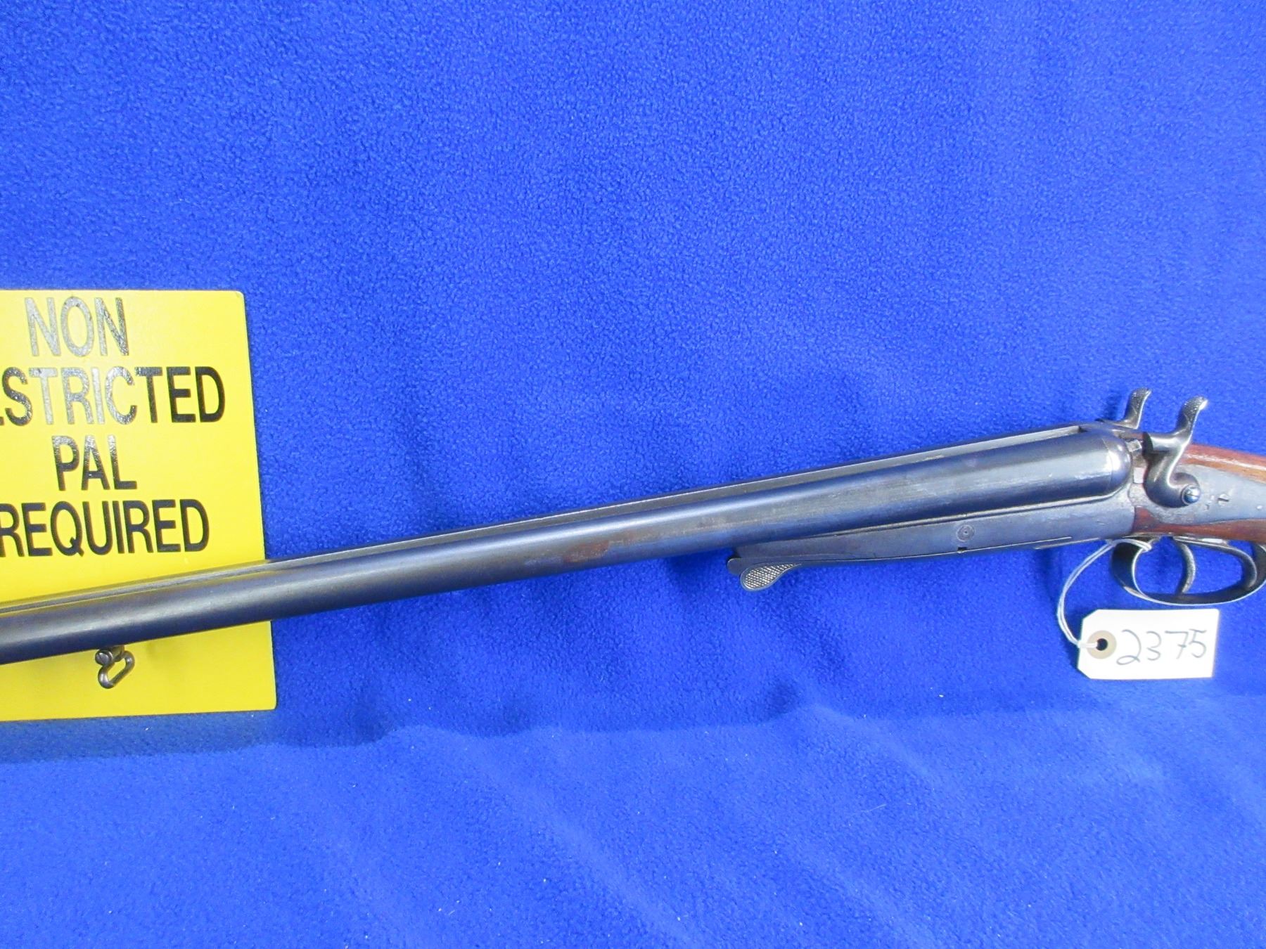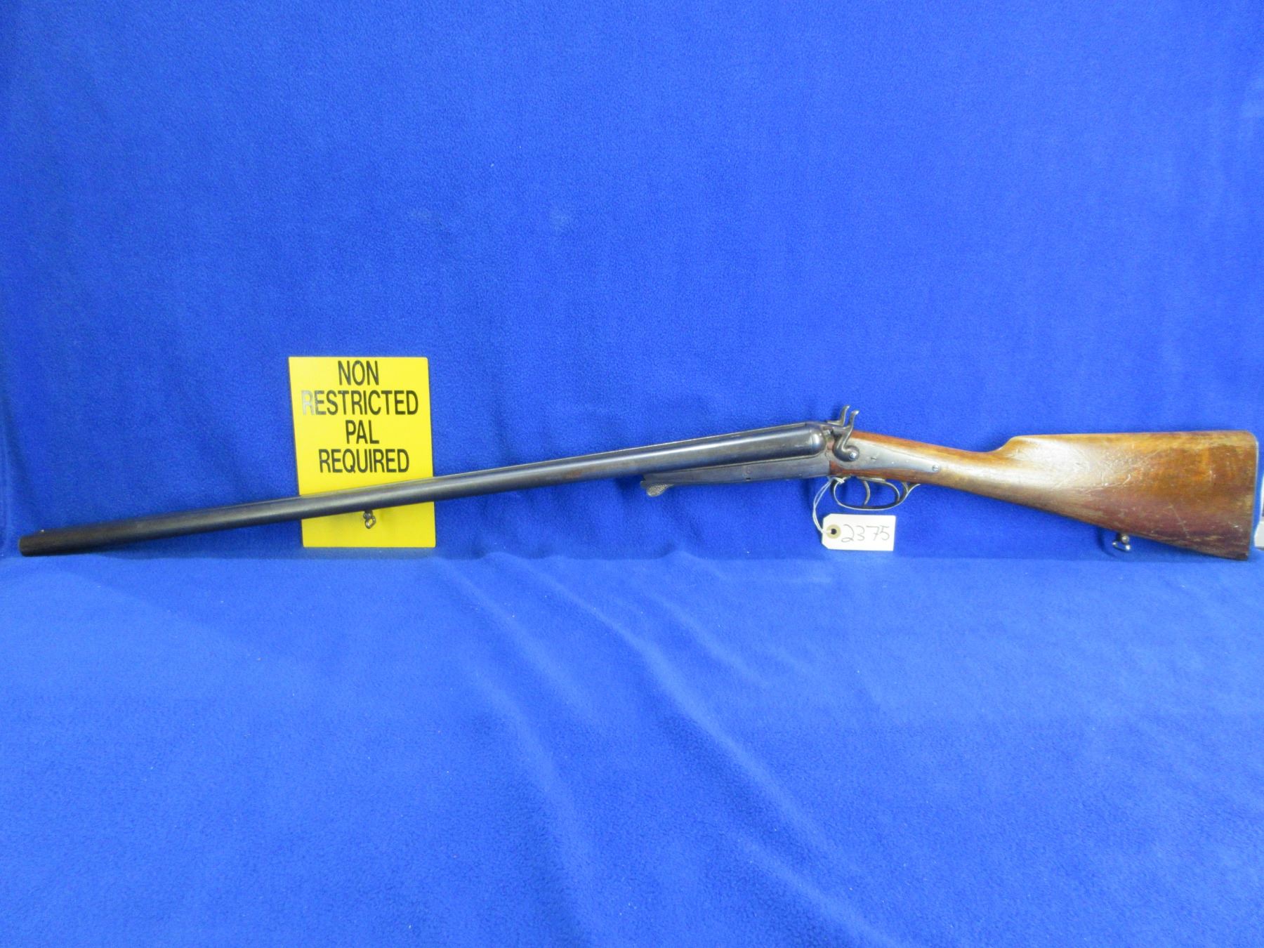 Non-Restricted - Husqvarna SXS in 12 Ga. 2 1/2" - This is a tip up SXS hammer shotgun with under lever, action is tight and appears to be in good working order. Barrels are 29 1/2", bores are good but left barrel has a small dent approx 11" from muzzle, bluing is turning grey, has bead front sight, stock is good with many usage marks and finish wear, length of pull is 14", metal butt plate good, comes with swivels. Ser # 56878