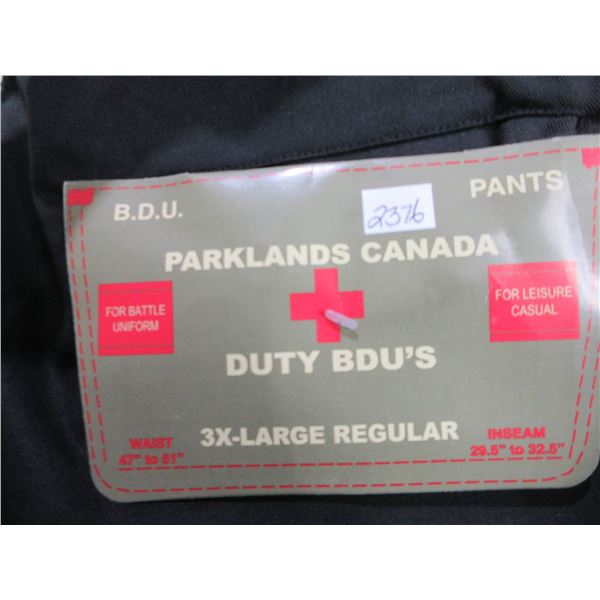 Parklands Canada Duty BDU'S Black Pants - Size 3X-Large Regular, Waist 47" to 51", Inseam is 29 1/2" to 32 1/2" - New Old Stock