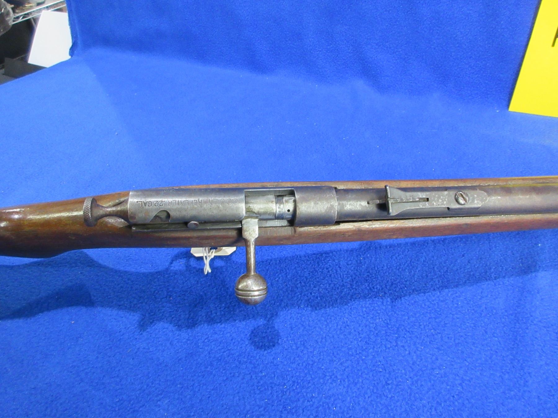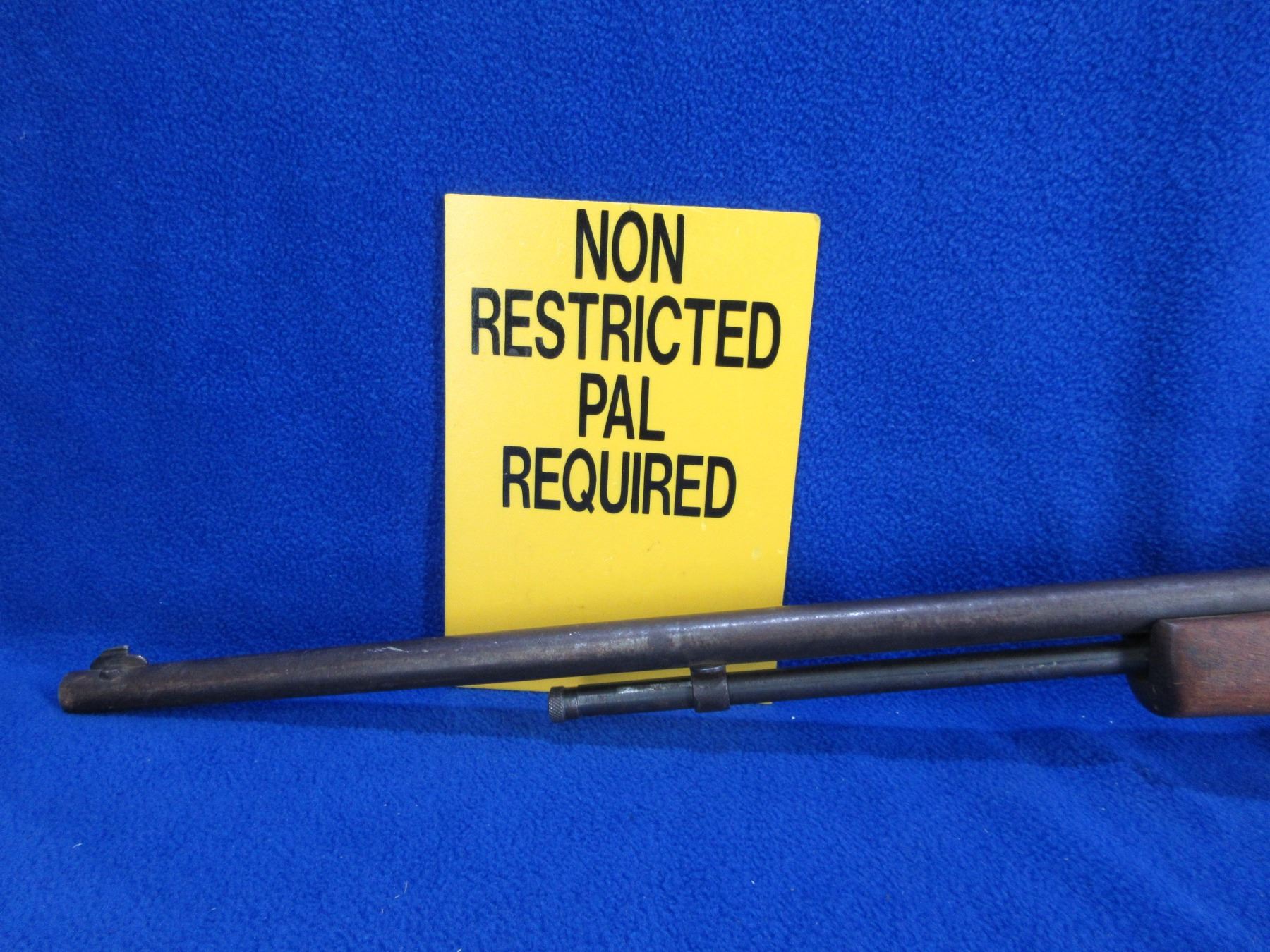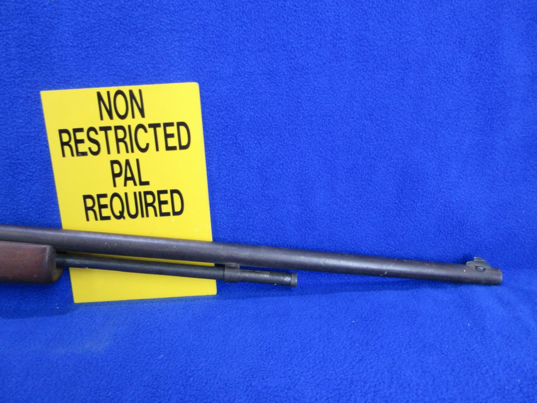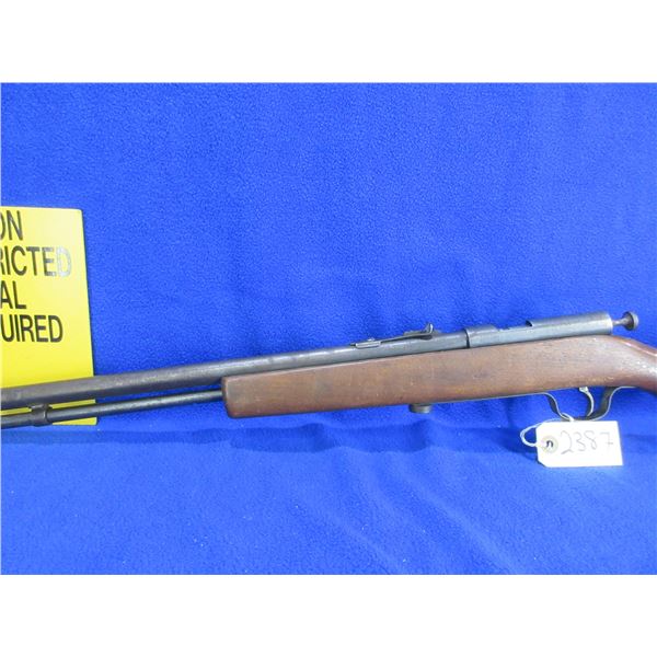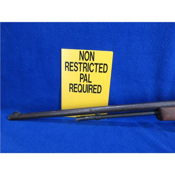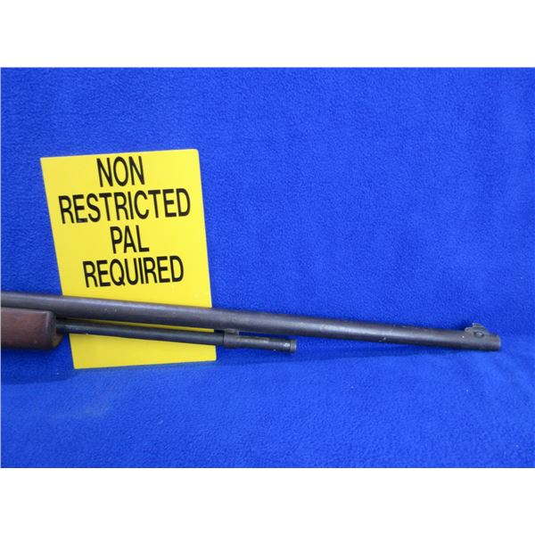 Non-Restricted - Cooey Model 60 Repeater in 22 Cal - This is a bolt action rifle with tube magazine, action appears to be in working order. Barrel is 24", rifling is good, bluing is mostly gone with rust and pitting, has both sights, stock is good with many usage marks, length of pull is 13", metal butt plate rusty. Ser #None