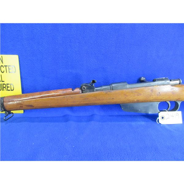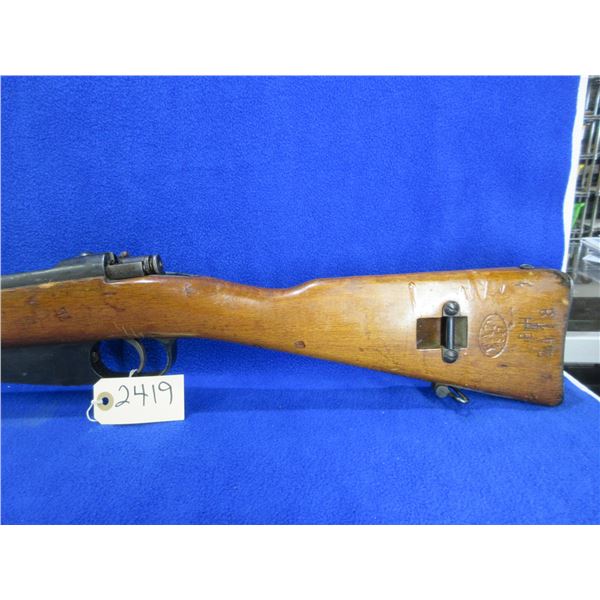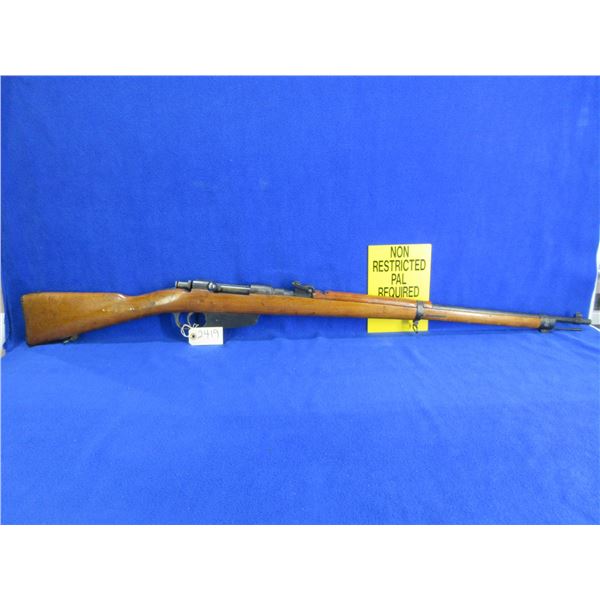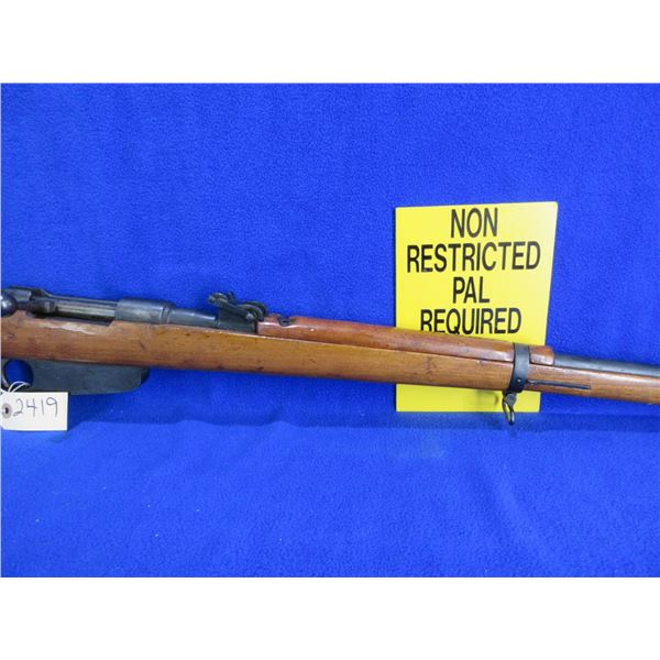 Non-Restricted - Mannlicher Carcano in 6.5x52 - This is a bolt action rifle with internal magazine, action appears to be in working order. Barrel is 27", rifling is good, bluing is good to very good, has both sights, full wood stock and hand guard are good for age with many usage marks, length of pull is 13", metal butt plate good, comes with swivels and cleaning rod. Stock and action appear numbers matching. Ser #BH2418