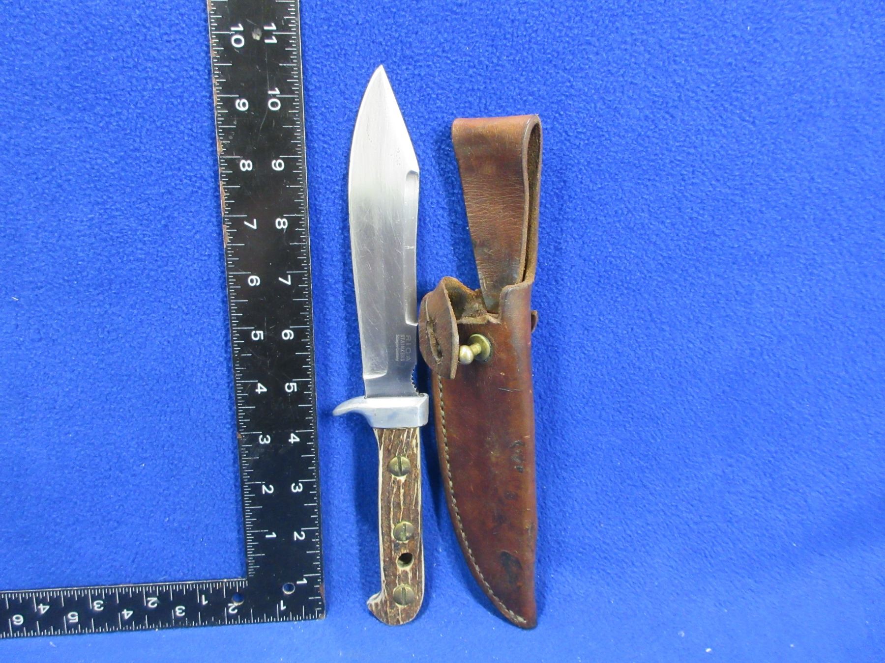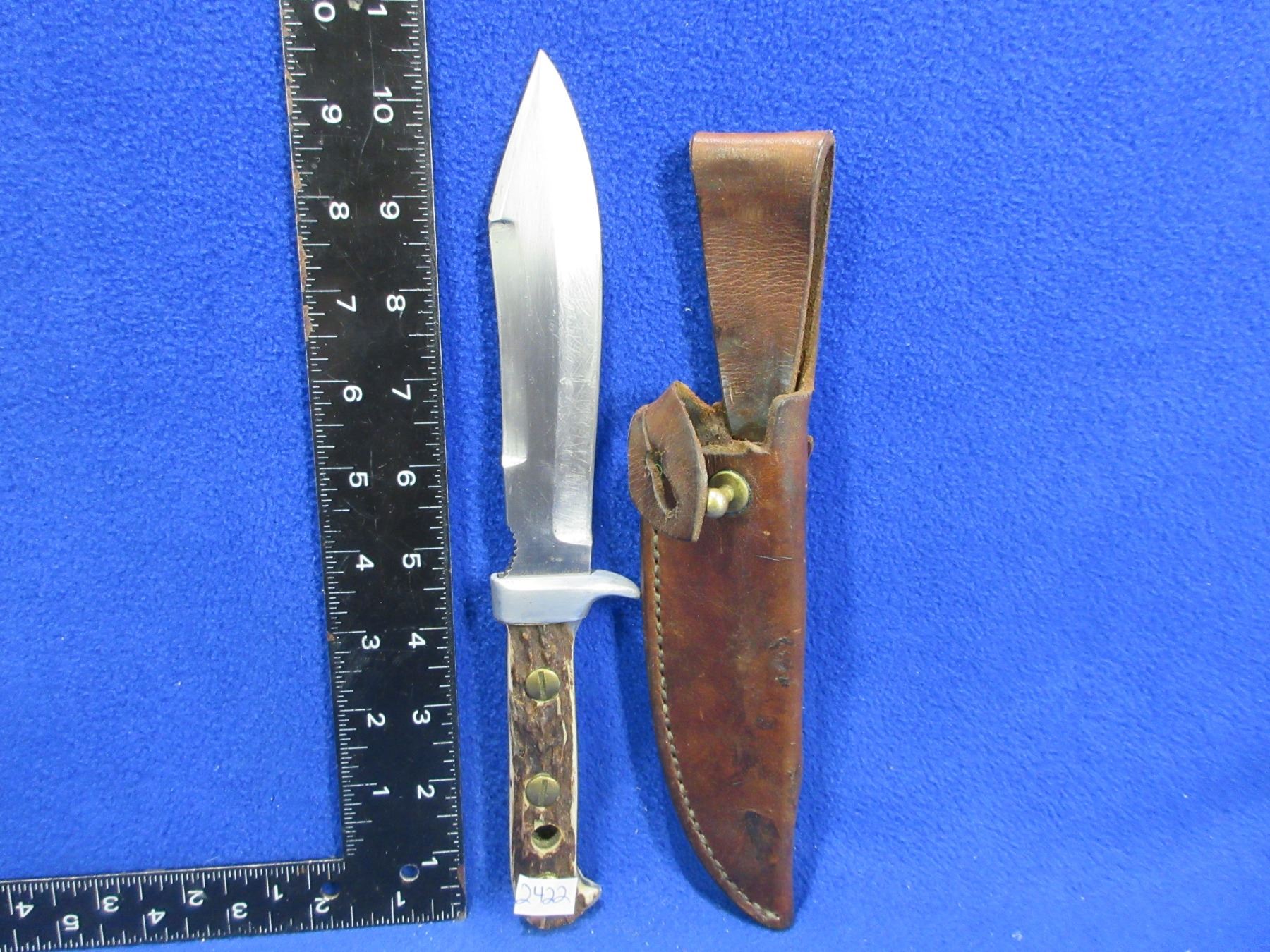 Lot 2422 Rica Fixed Blade Hunting Knife w/ Leather Sheath & Stag Handle