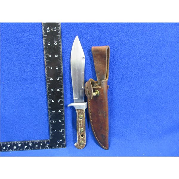 Rica Fixed Blade Hunting Knife w/ Leather Sheath & Stag Handle - Stainless, Solingen Germany - 6" Blade, 10 1/4" Total Length