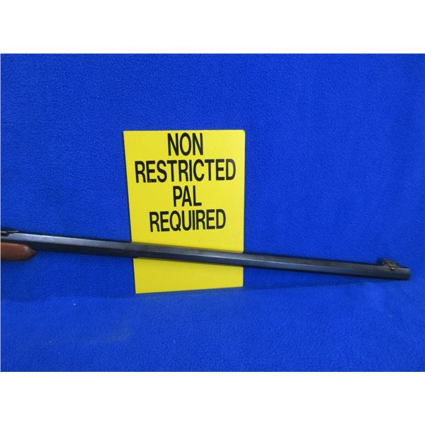 Non-Restricted - Husqvarva Sakrat in 22 LR - This is a single shot bolt action rifle, action appears to be in good working order. Octagon barrel is 24 1/2", rifling is fair with pitting (may need wet cleaning), bluing is good, has both sights, stock is good with usage marks, length of pull is 14", metal butt plate good. Ser # 28383